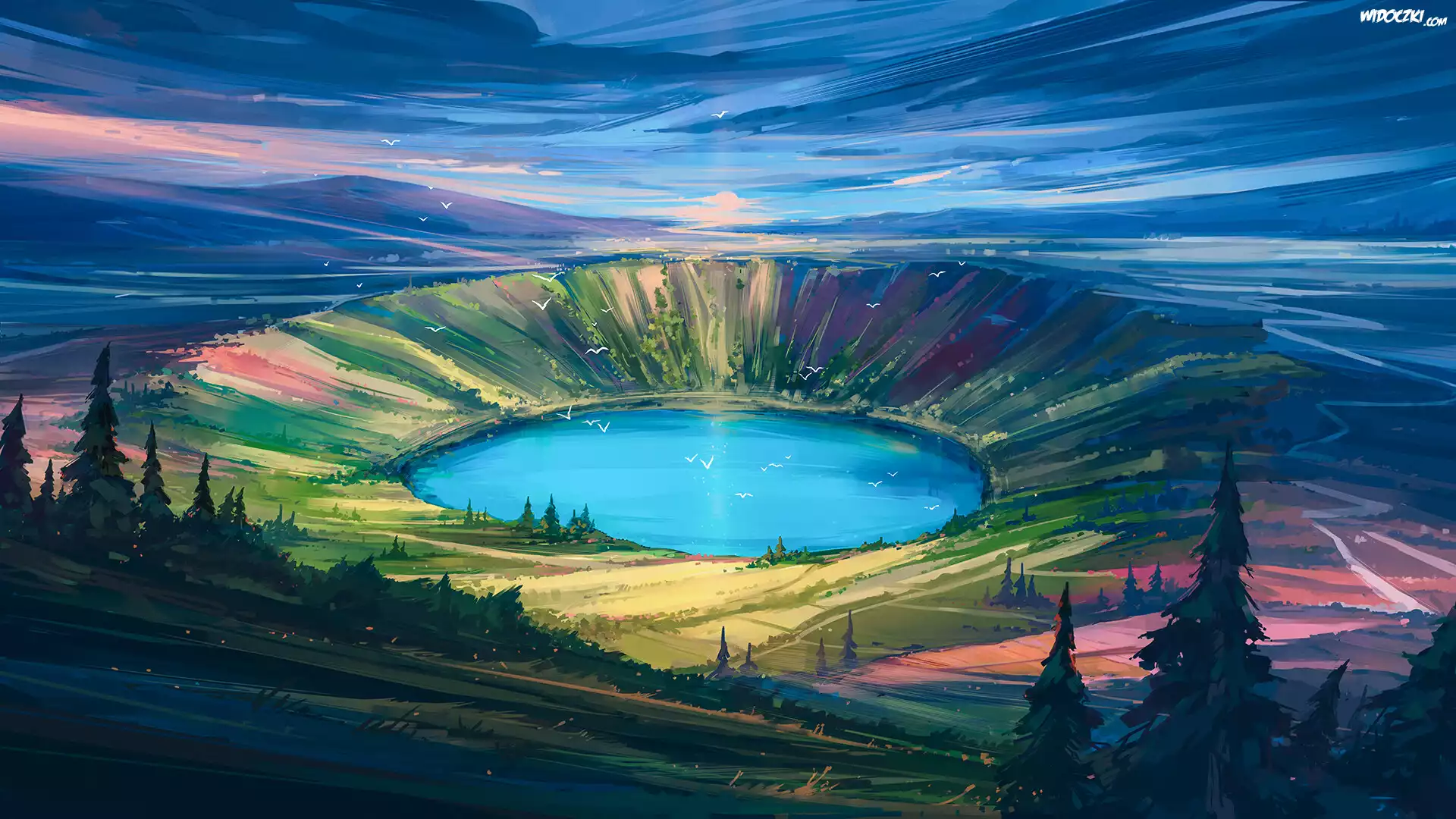 Zdjęcia, Jezioro, Krater, Drzewa, Grafika