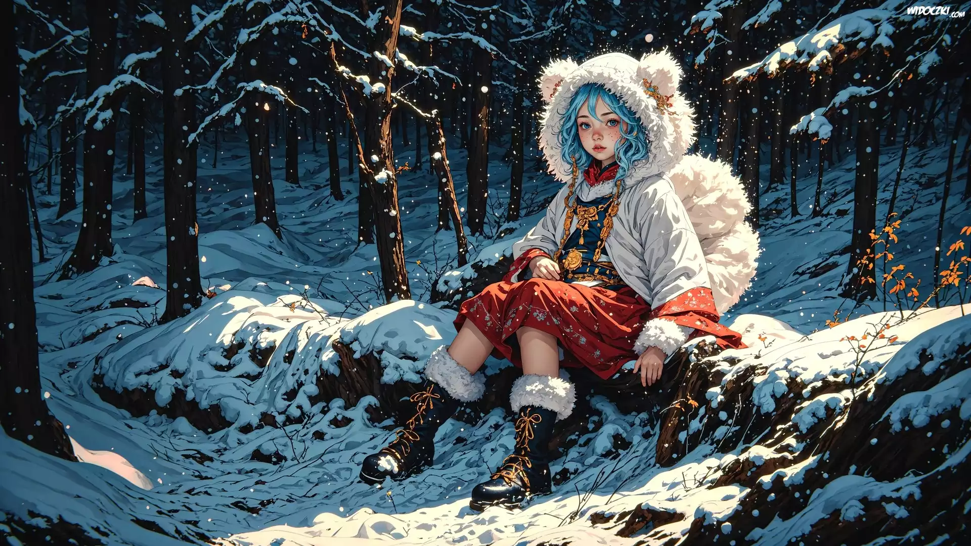 Dziecko, Dziewczynka, Niebieskie, Włosy, Czapka, Śnieg, Las, 2D
