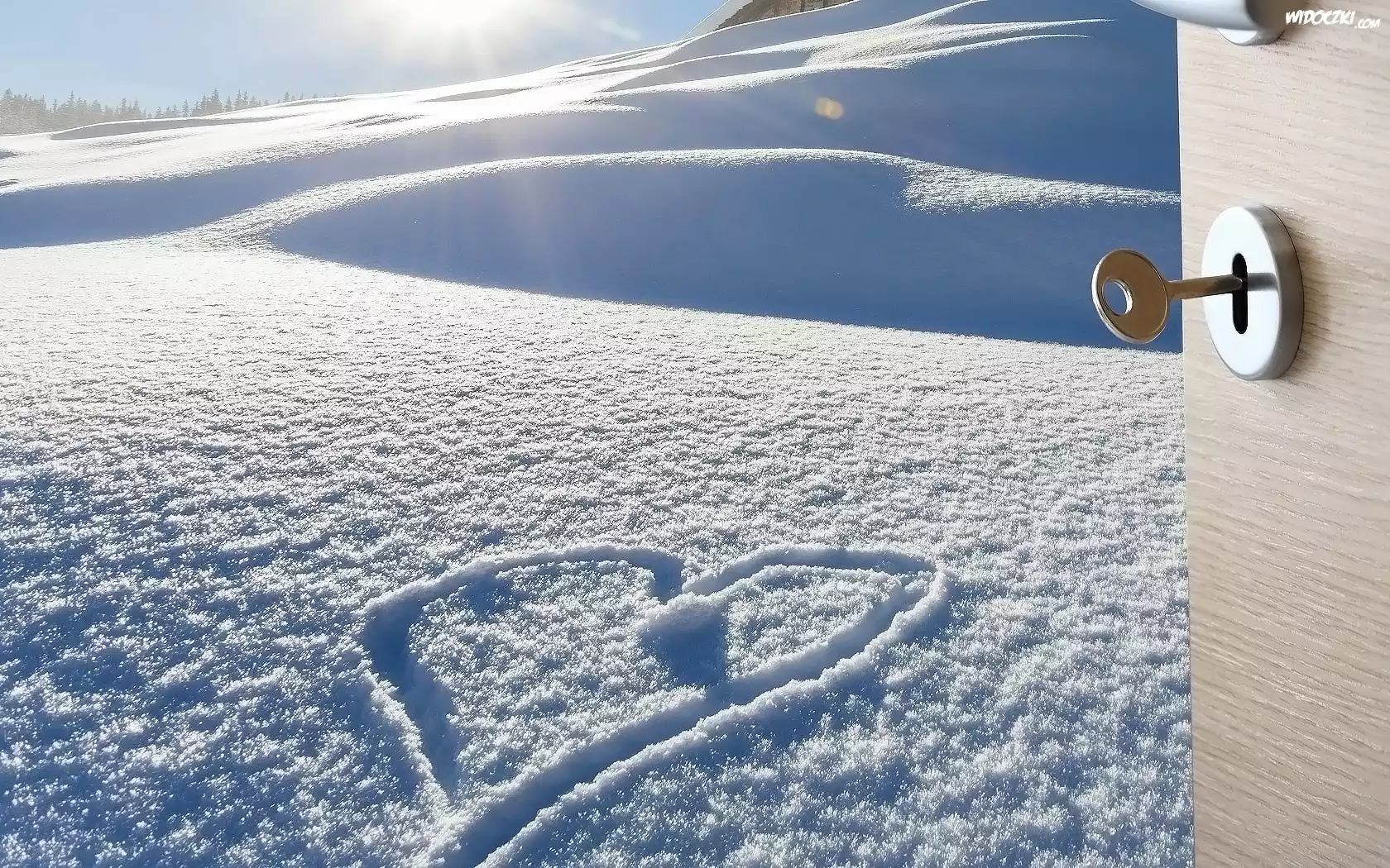Zdjęcia, Abstrakcja, Serce, Zima, Śnieg, Drzwi, Klucz