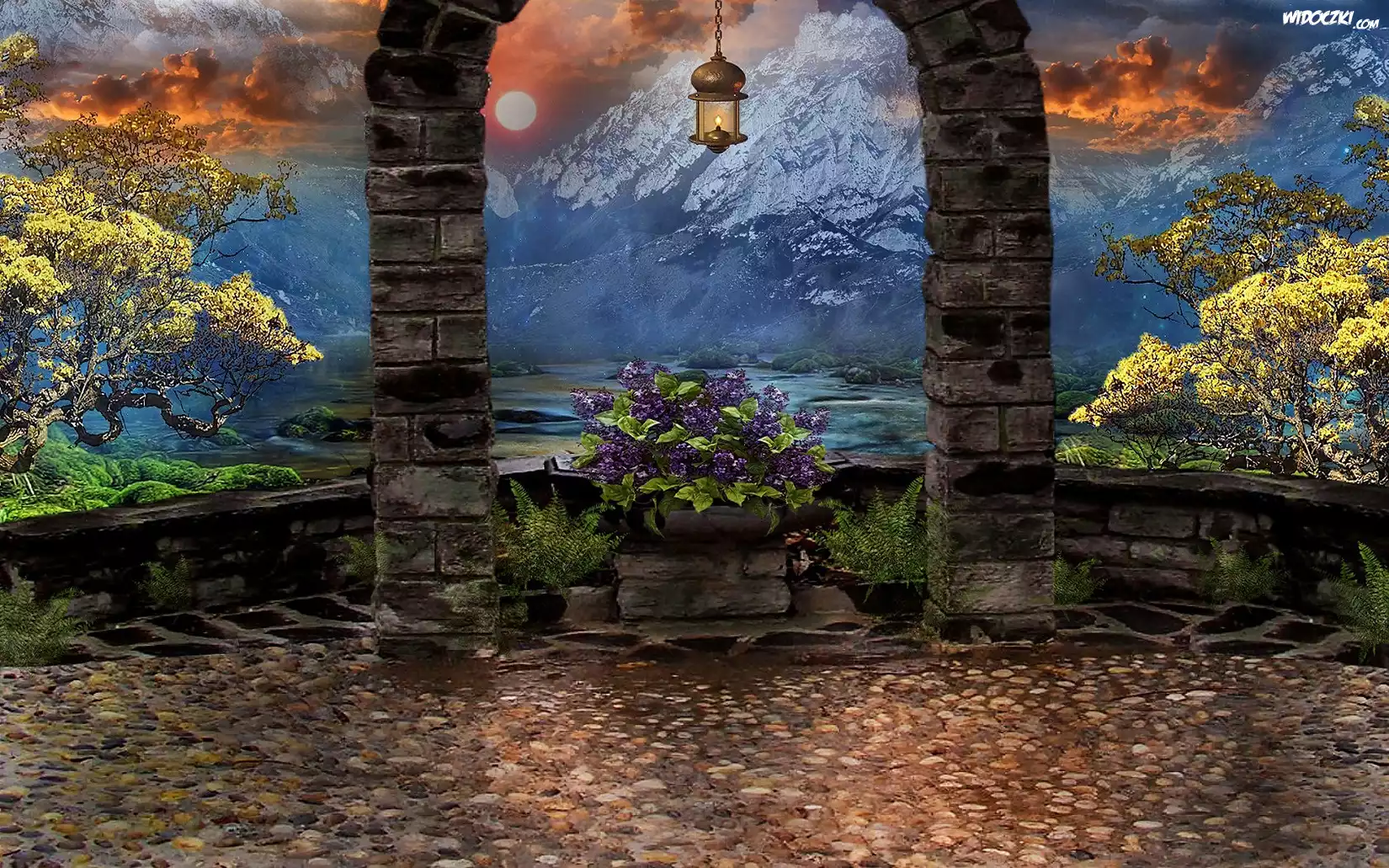 Zdjęcia, Abstrakcja, Widok, Góry, Taras, Lampion, Bez