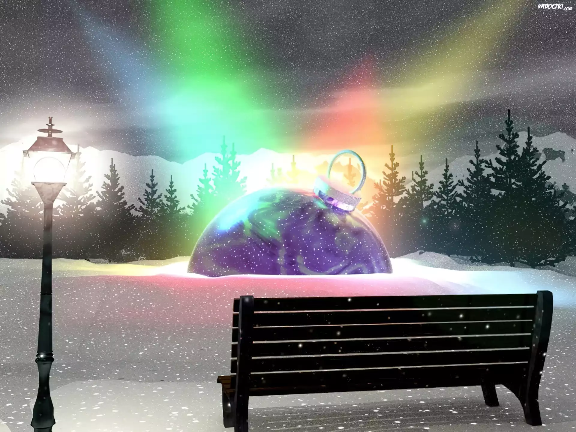 Zdjęcia, Abstrakcja, Bombka, Kolorowe, Światła, Ławka