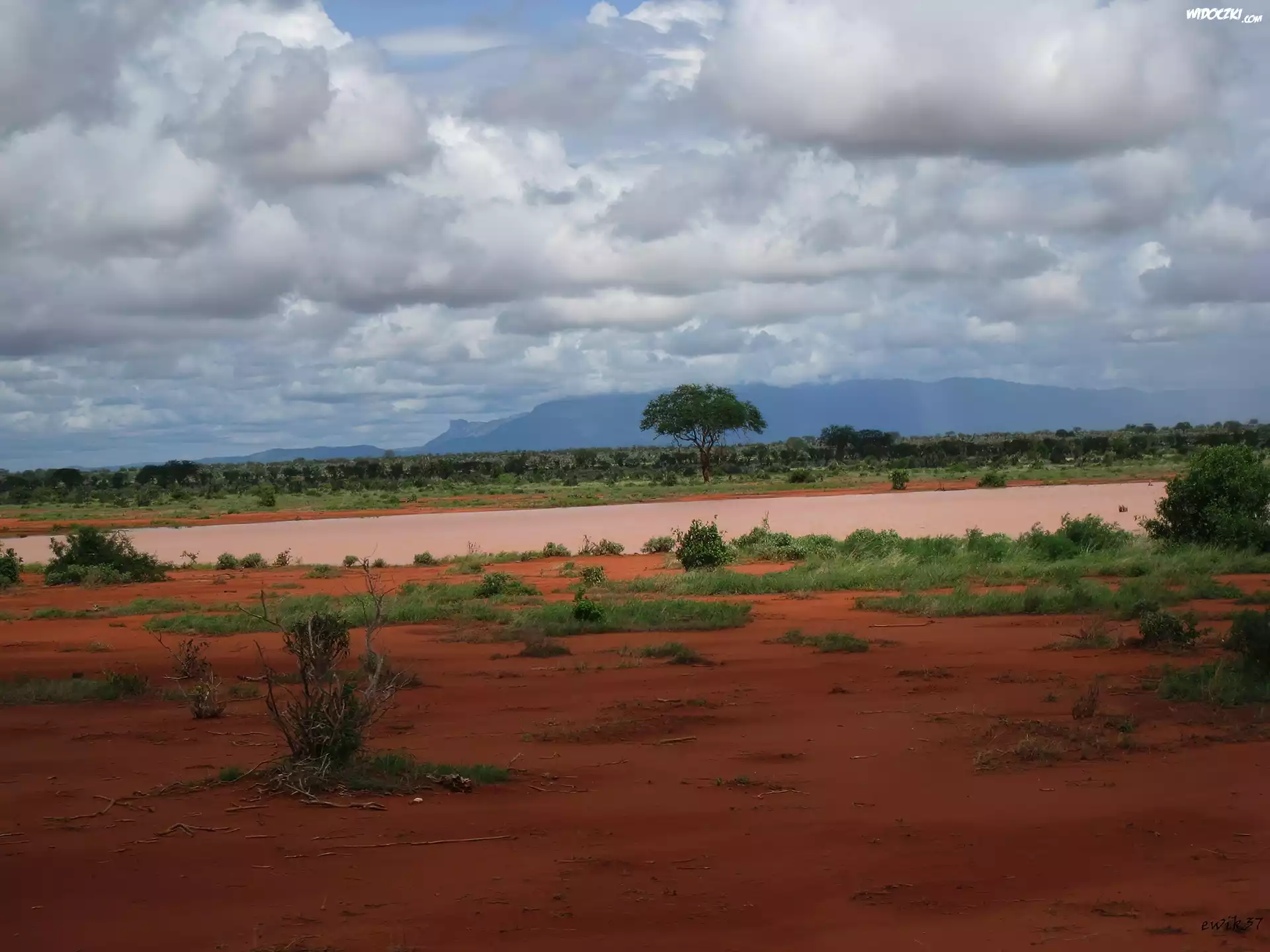 Afryka, Kenia, Pustynia, Drzewo, Niebo, Rośliny