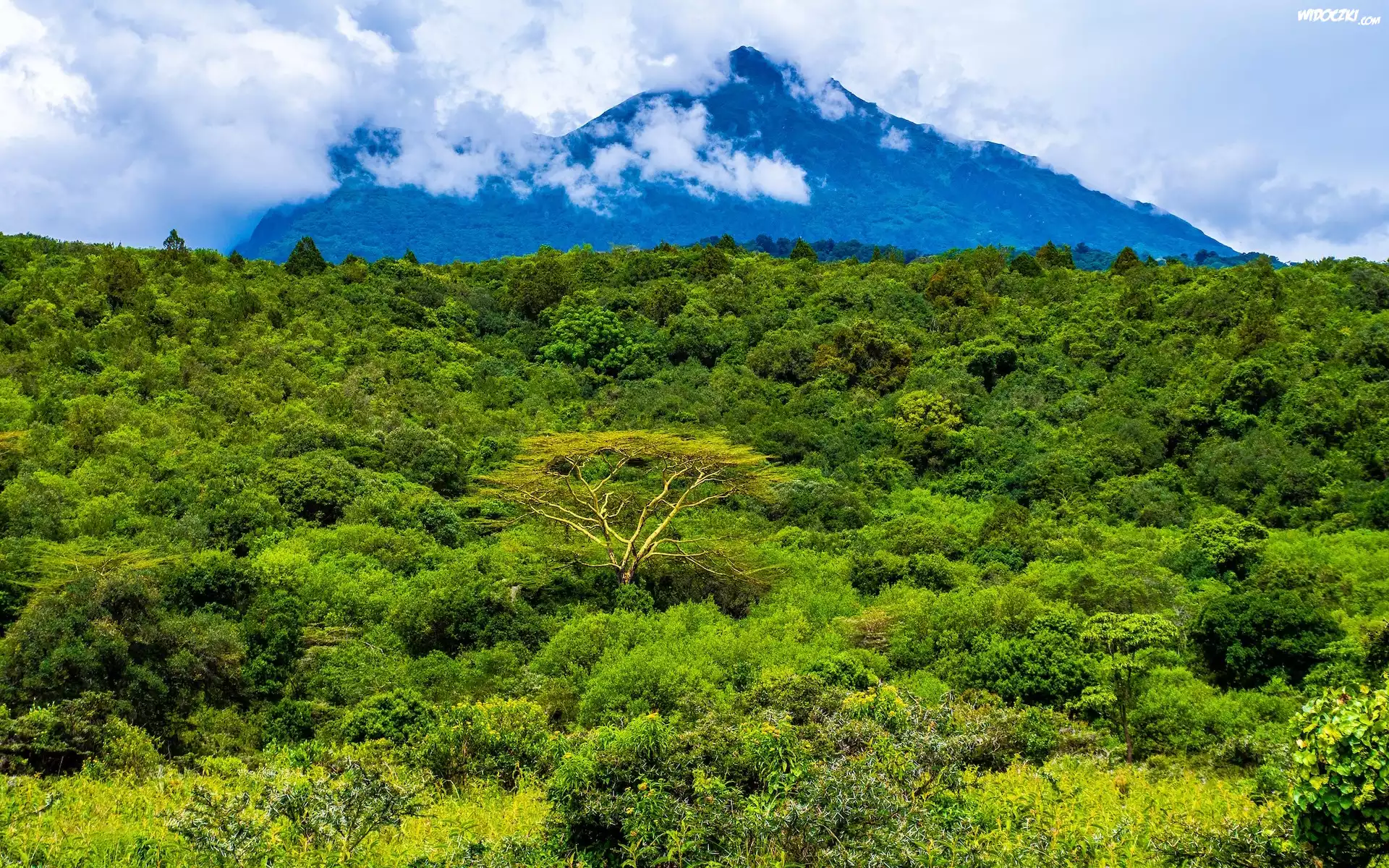 Zdjęcia, Afryka, Tanzania, Park Narodowy Aruszy, Góra, Roślinność, Drzewa, Chmury