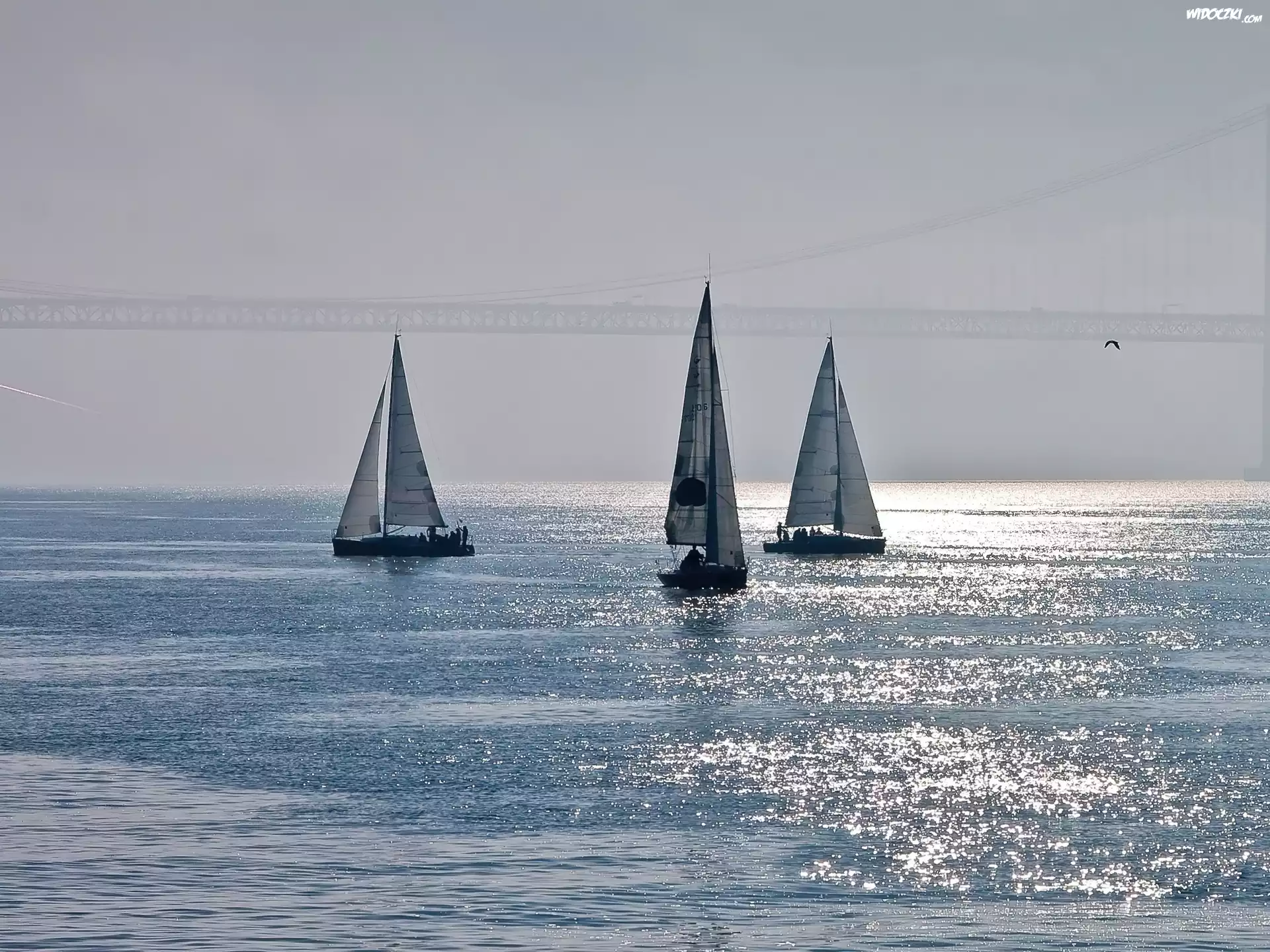 Zdjęcia, Żaglówki, Most, Jezioro