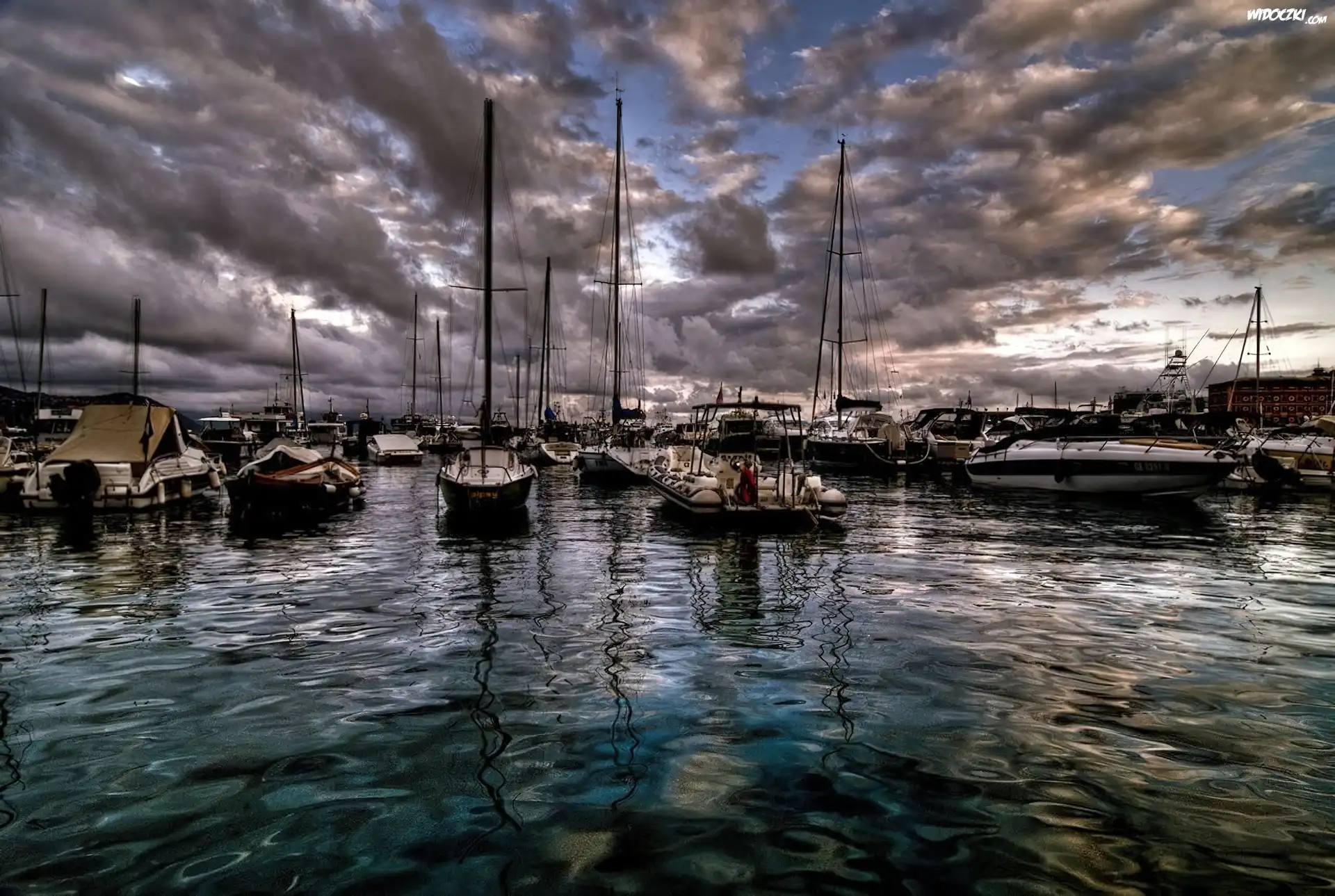 Zdjęcia, Przystań, Chmury, Żaglówki, Woda