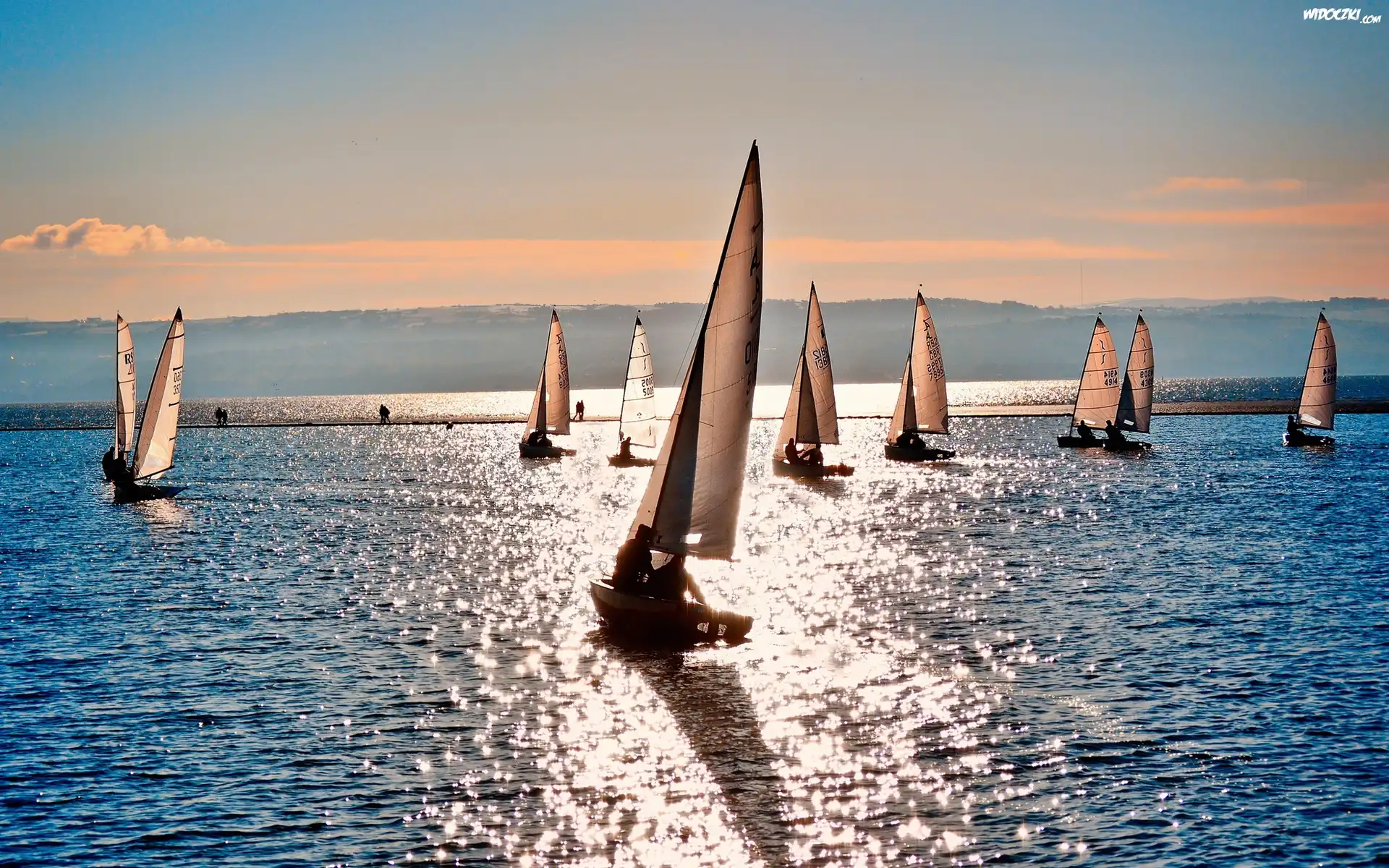 Zdjęcia, Jezioro, Żaglówki, Niebo