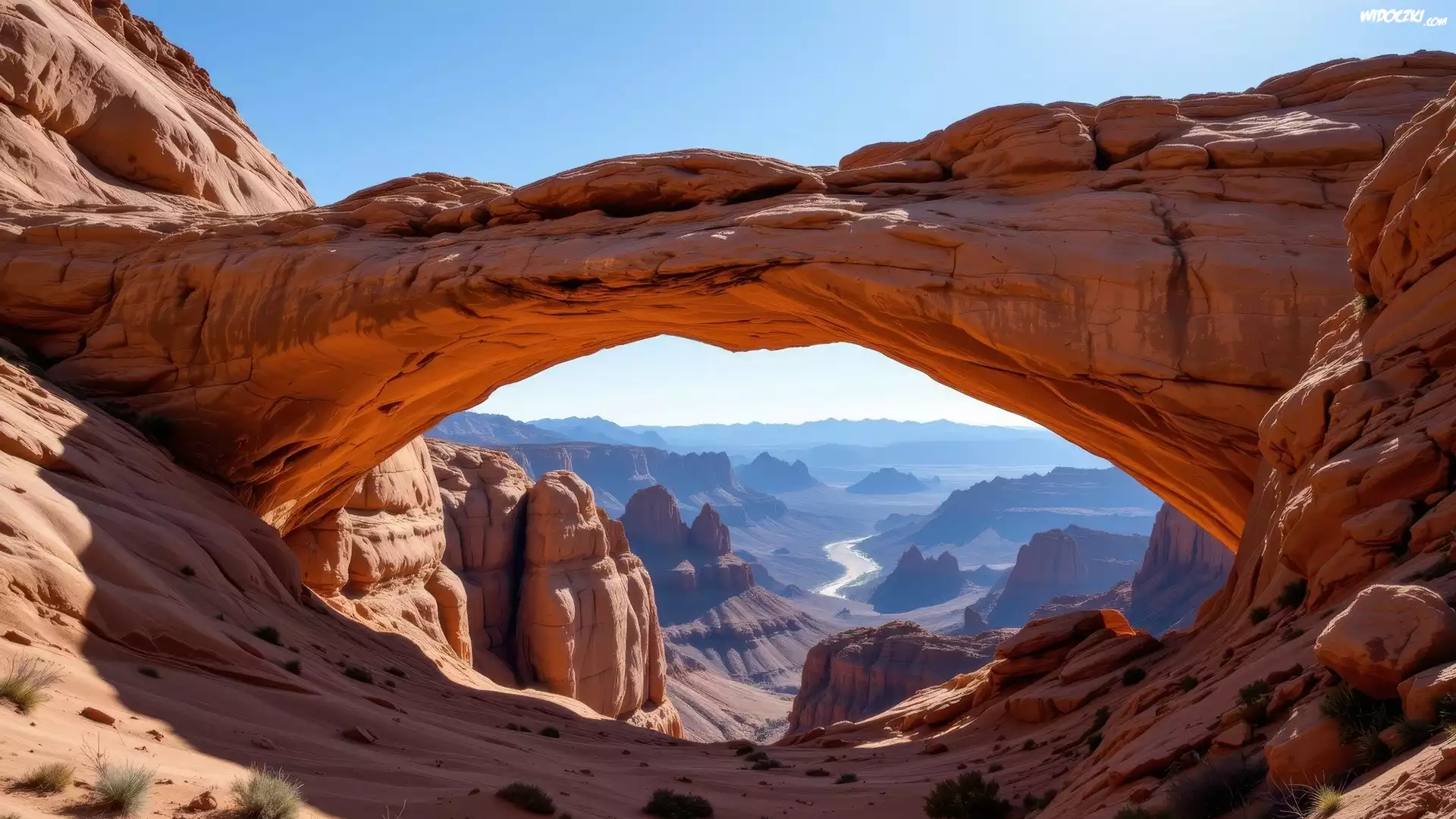 Zdjęcia, Kanion, Skały, Łuk, Widok, Góry, Rzeka, Rośliny, AI