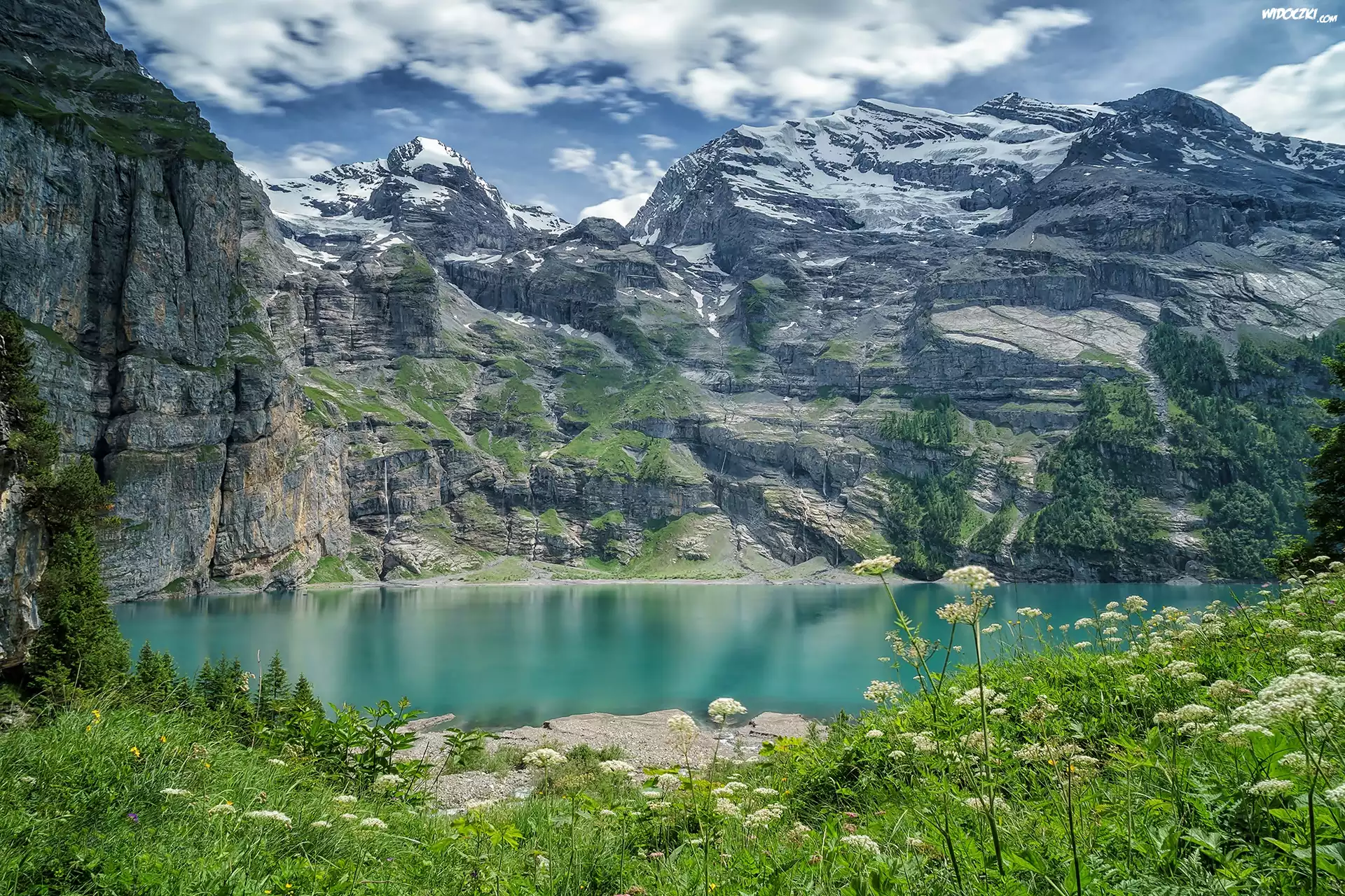 Szwajcaria, Kanton Berno, Góry Alpy Berneńskie, Jezioro Oeschinen, Łąka