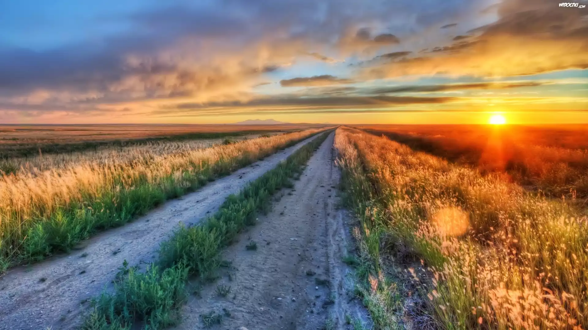 ZachmurzonyZachód Słońca Droga, Liście, Jesień Ogromne skrzyżowanie Koń, Kasztan, Łąka Wiosna, Lato, Łąka Odrzutowiec, Zachód Śłońca Niebo, Chmury, Zachód, Słońca Drzewa, Droga Zając, Trawa, Łąka Przesmyk,  Zachód Słońca Łąka, Słońce, Balony Góra, Chmury, Niebo Zielone, Połacie, Pól, Białe, Obłoki Lwy, Zachód słońca