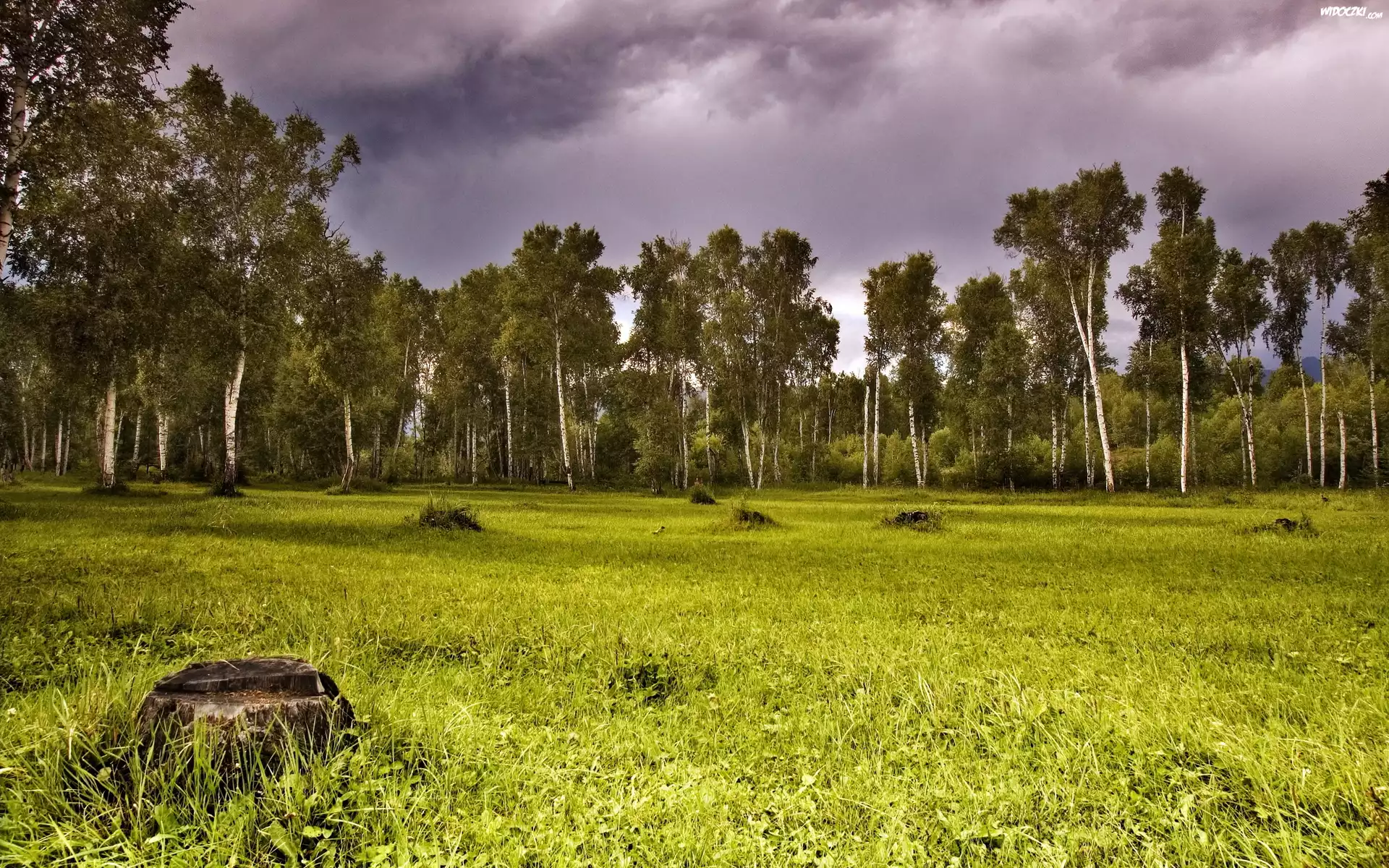 Zdjęcia, Drzewa, Łąka, Chmury