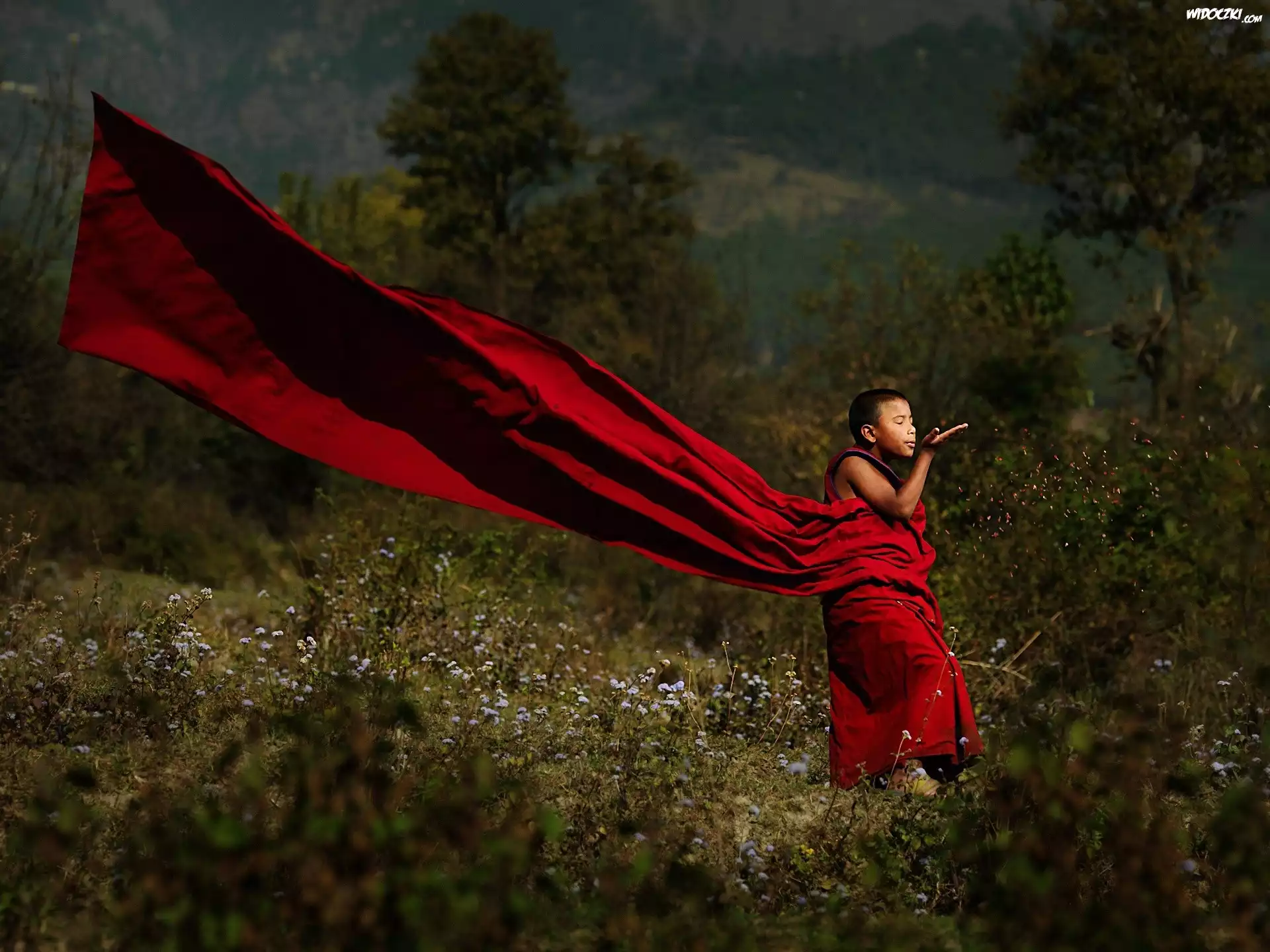 Zdjęcia, Dziecko, Łąka, Wiatr