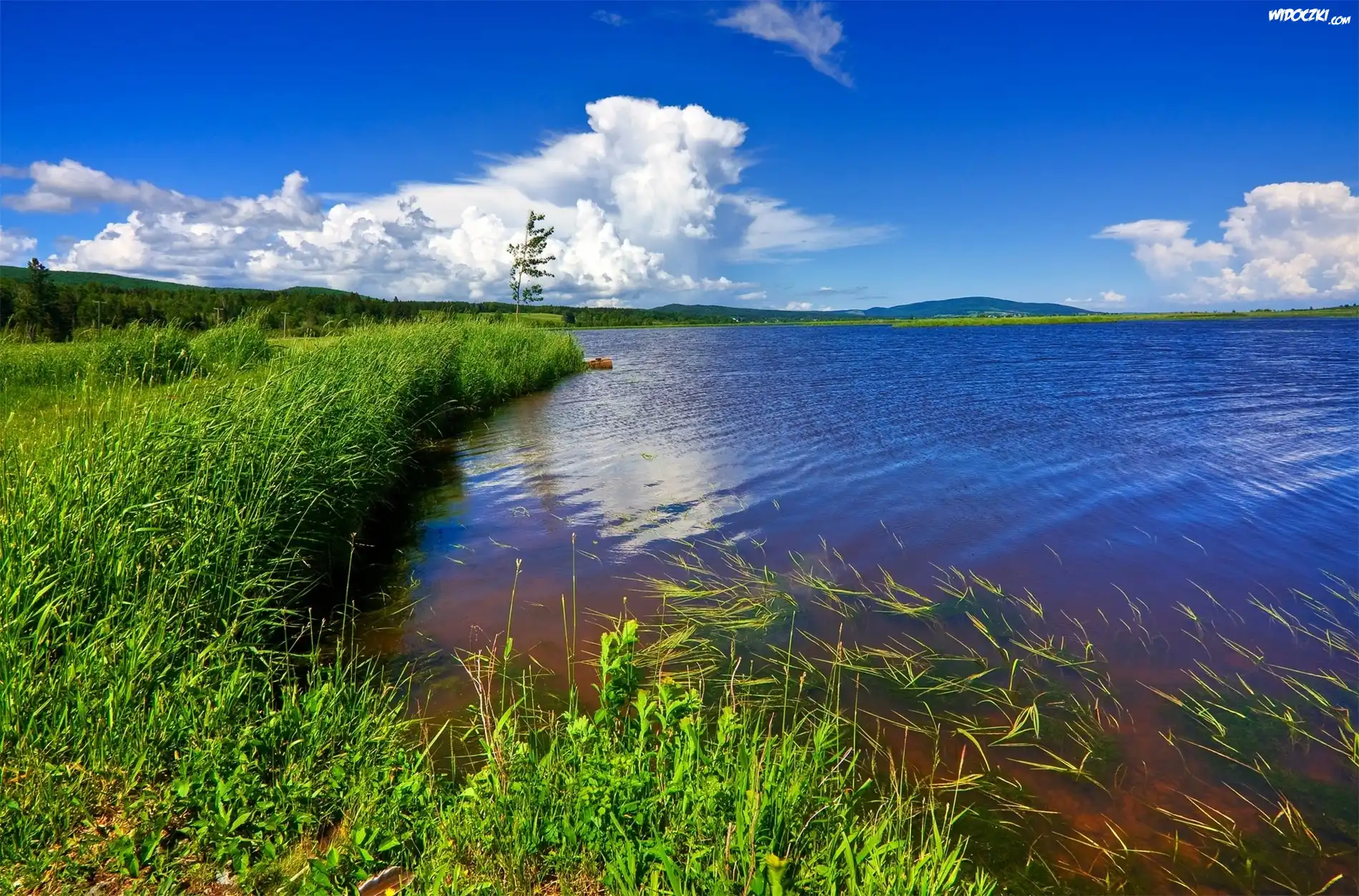 Zdjęcia, Jezioro, Łąka ,Chmury