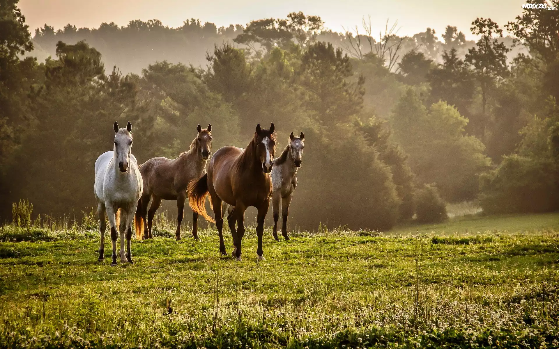 Zdjęcia, Konie, Łąka, Las