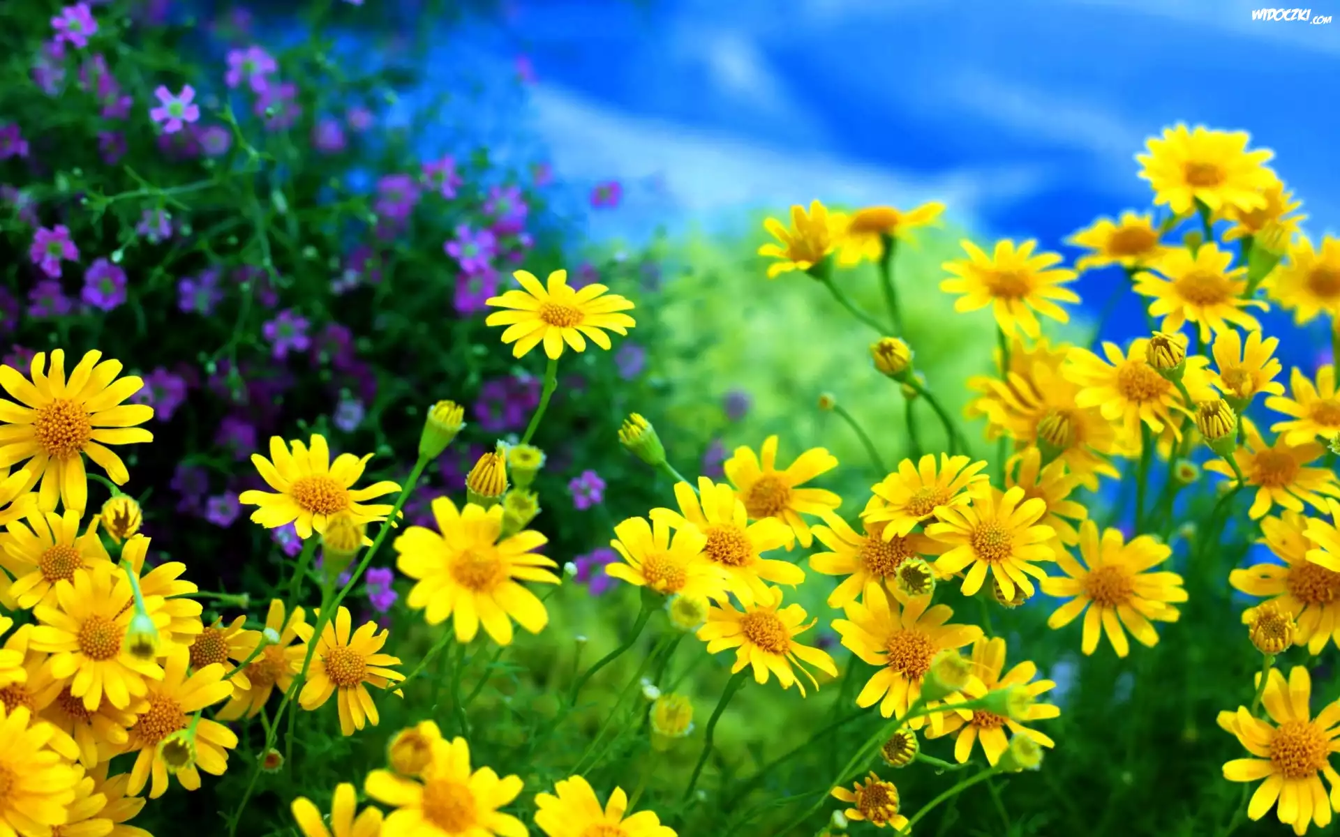 Margerytki, Łąka, Niebo