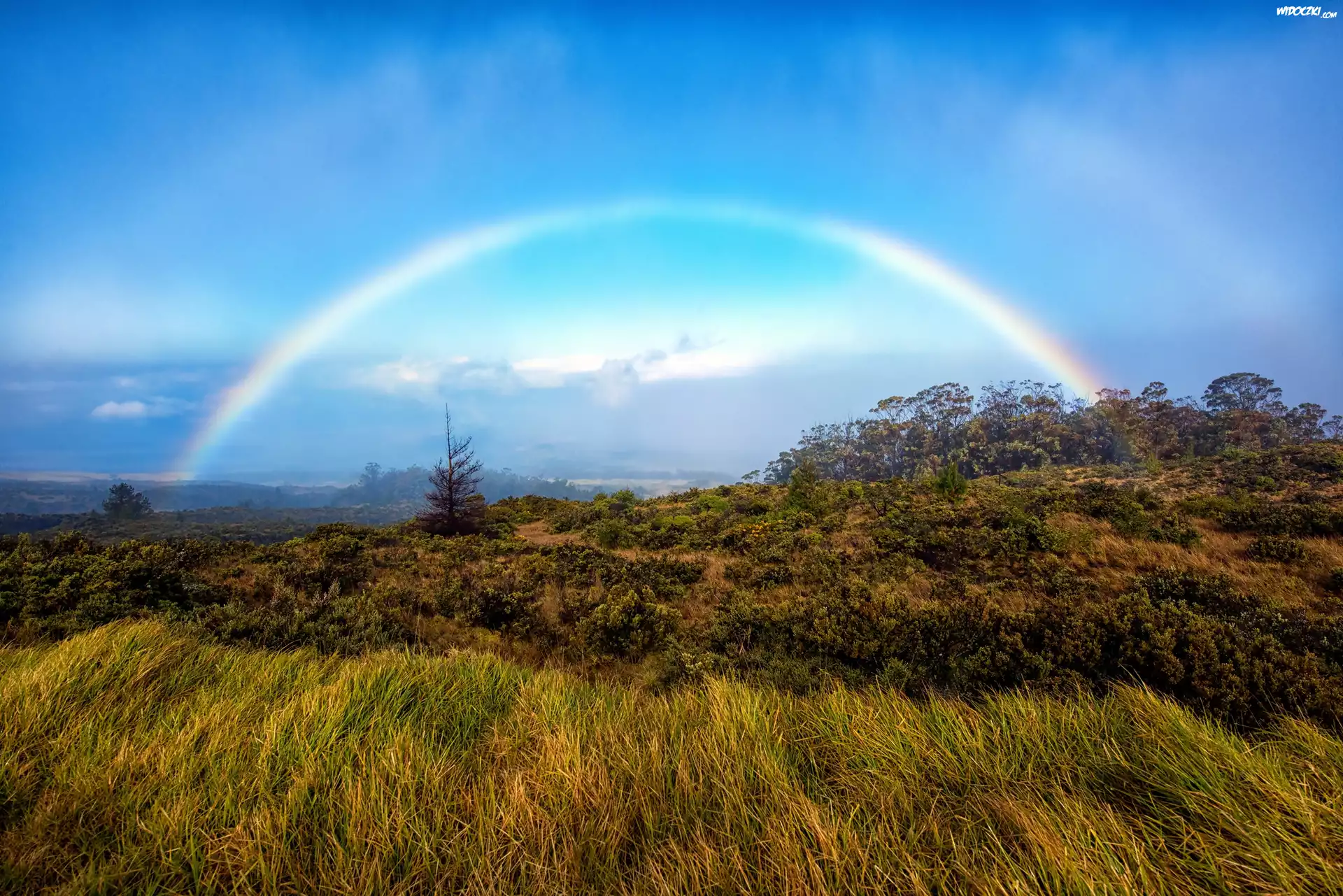 Zdjęcia, Hawaje, Wyspa Maui, Park Narodowy Haleakalā, Tęcza, Łąka
