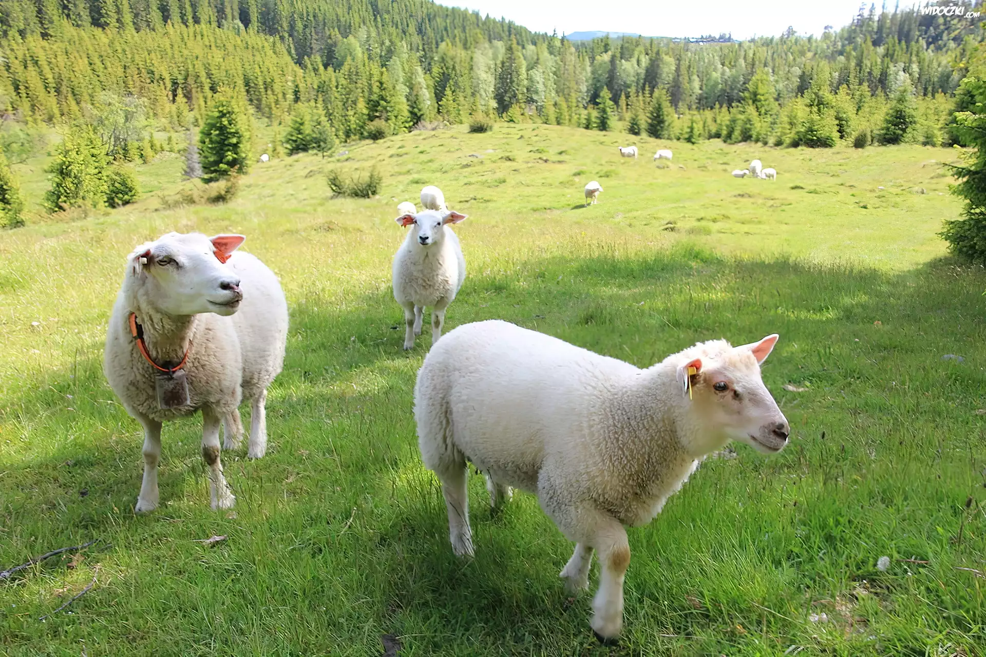 Zdjęcia, Owieczki, Łąka, Las