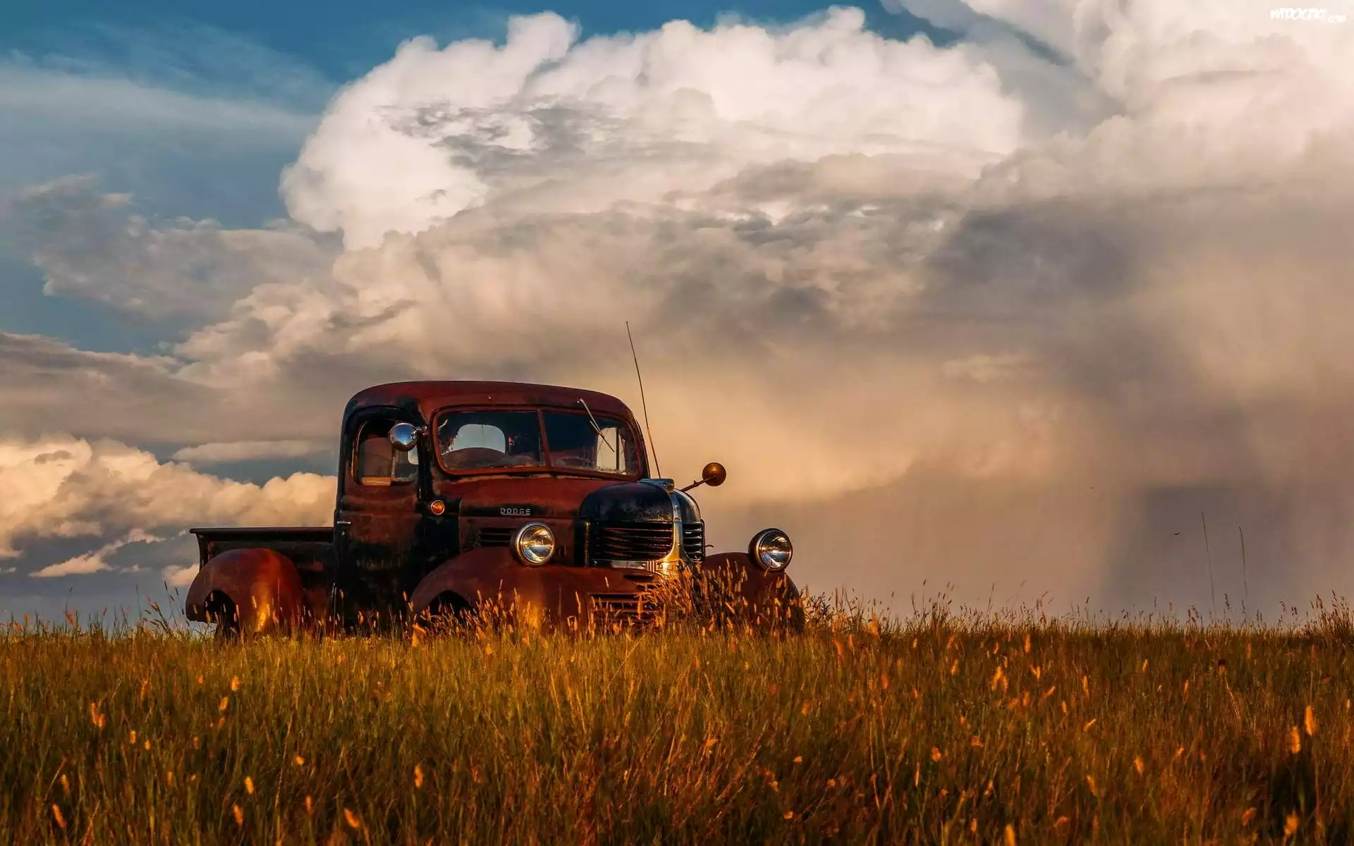Półciężarówka, Łąka, Chmury