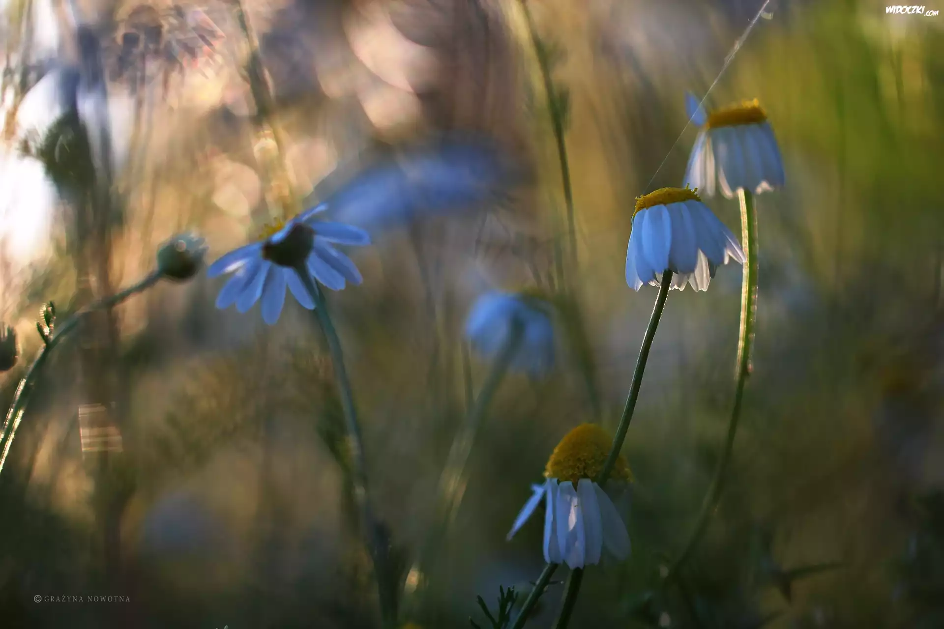 Zdjęcia, Rumianek, Łąka, Wieczór
