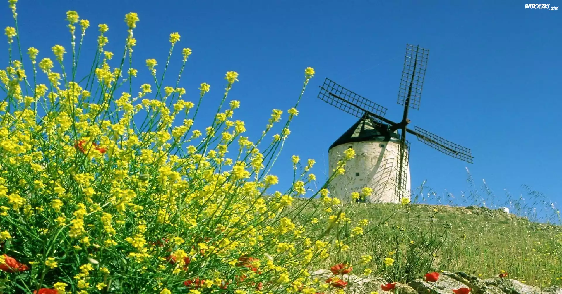 Zdjęcia, Wiatrak, Łąka, Kwiatki
