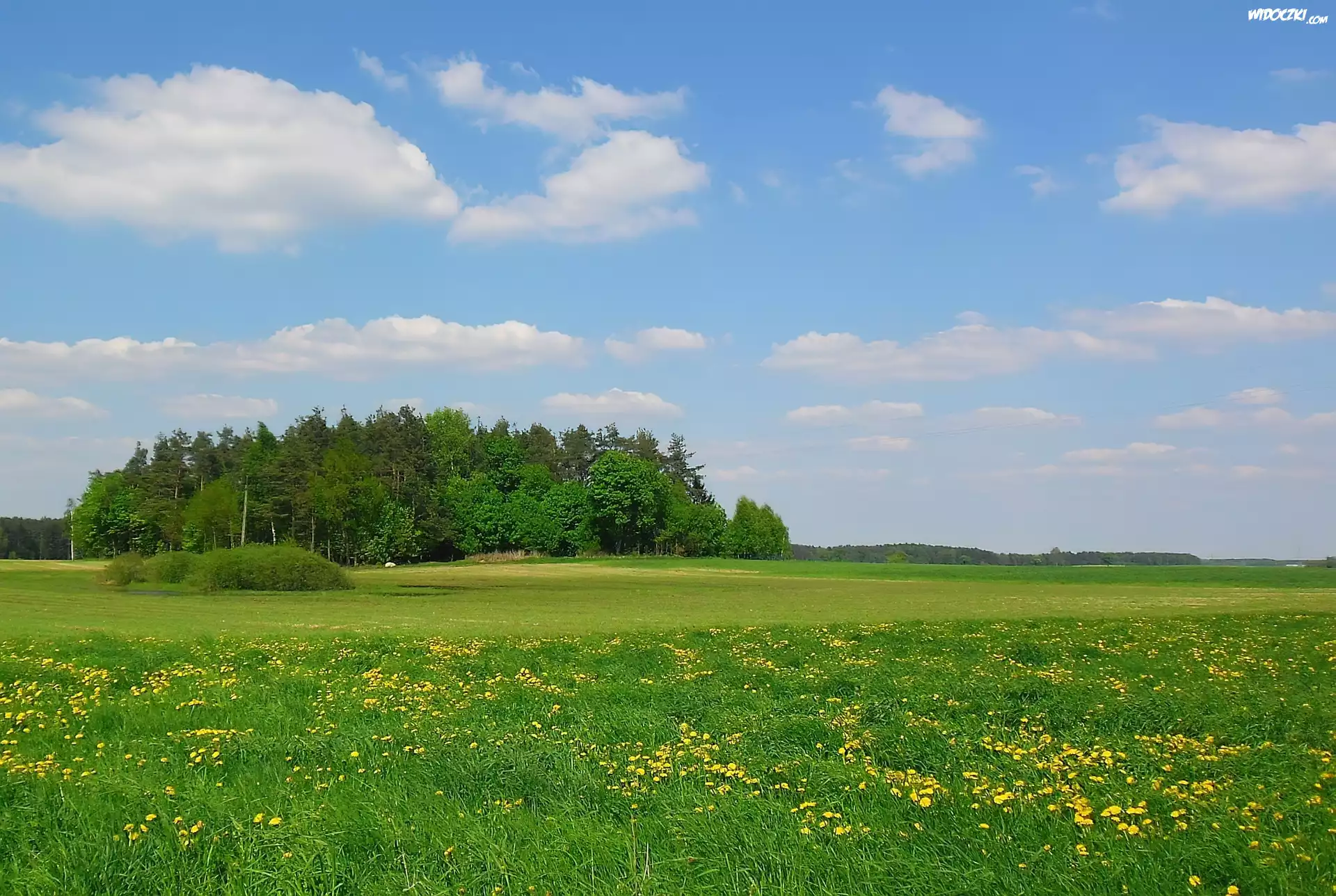 Zdjęcia, Wiosna, Łąka, Drzewa