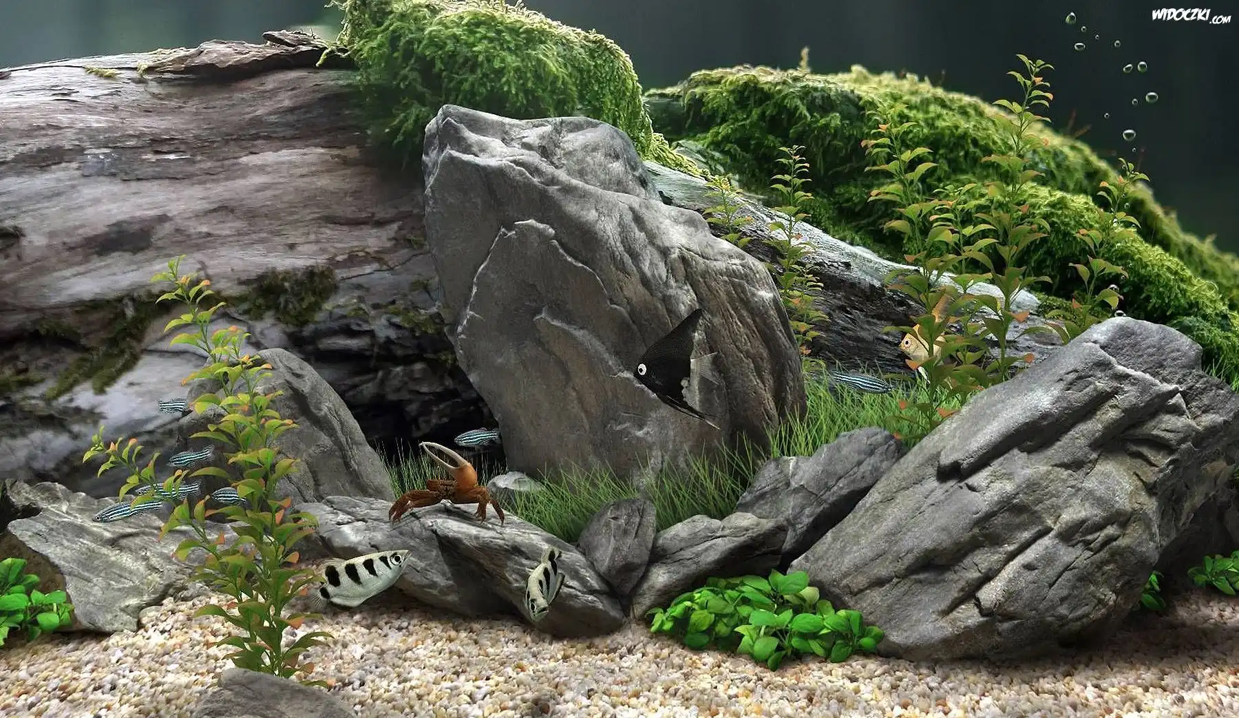 Zdjęcia, Akwarium, Kamienie, Rybki, Krab