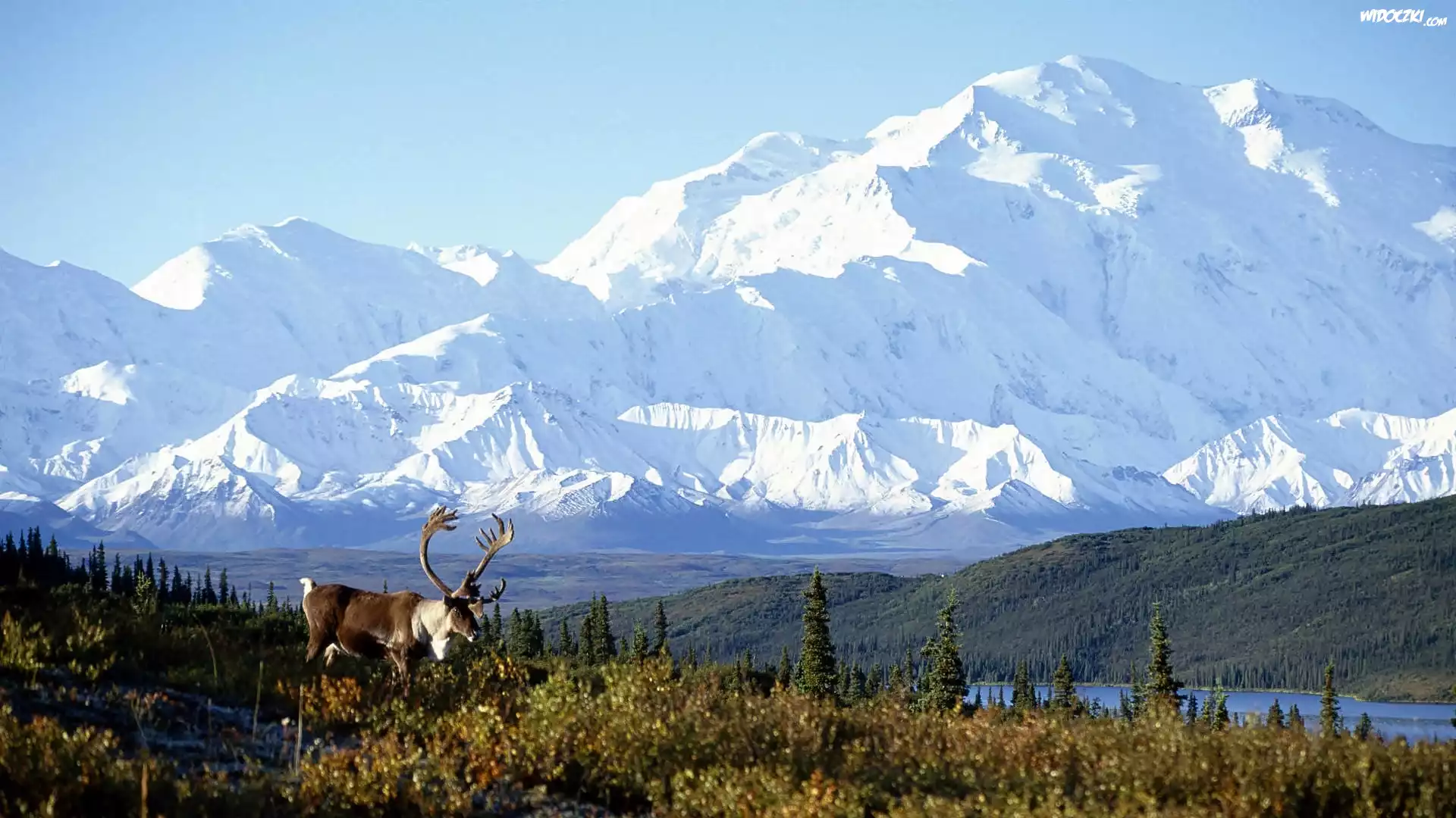 Zdjęcia, Alaska, Góry, Jezioro, Łąka, Jelenie