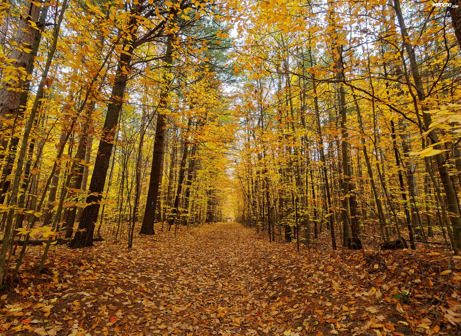 Jesień, Las, Drzewa, Alejka, Opadnięte, Liście