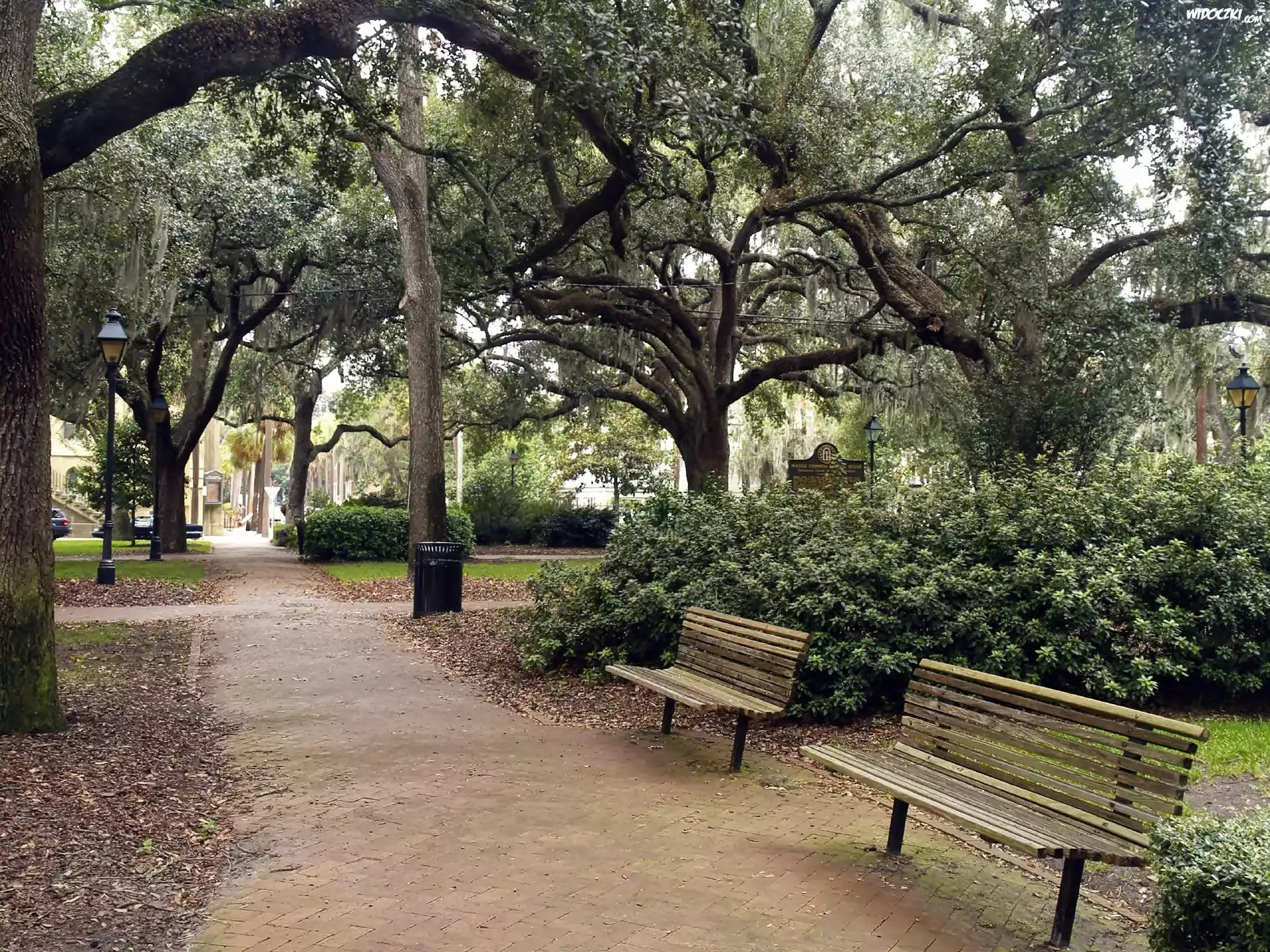 Zdjęcia, Park, Alejka, Ławeczki