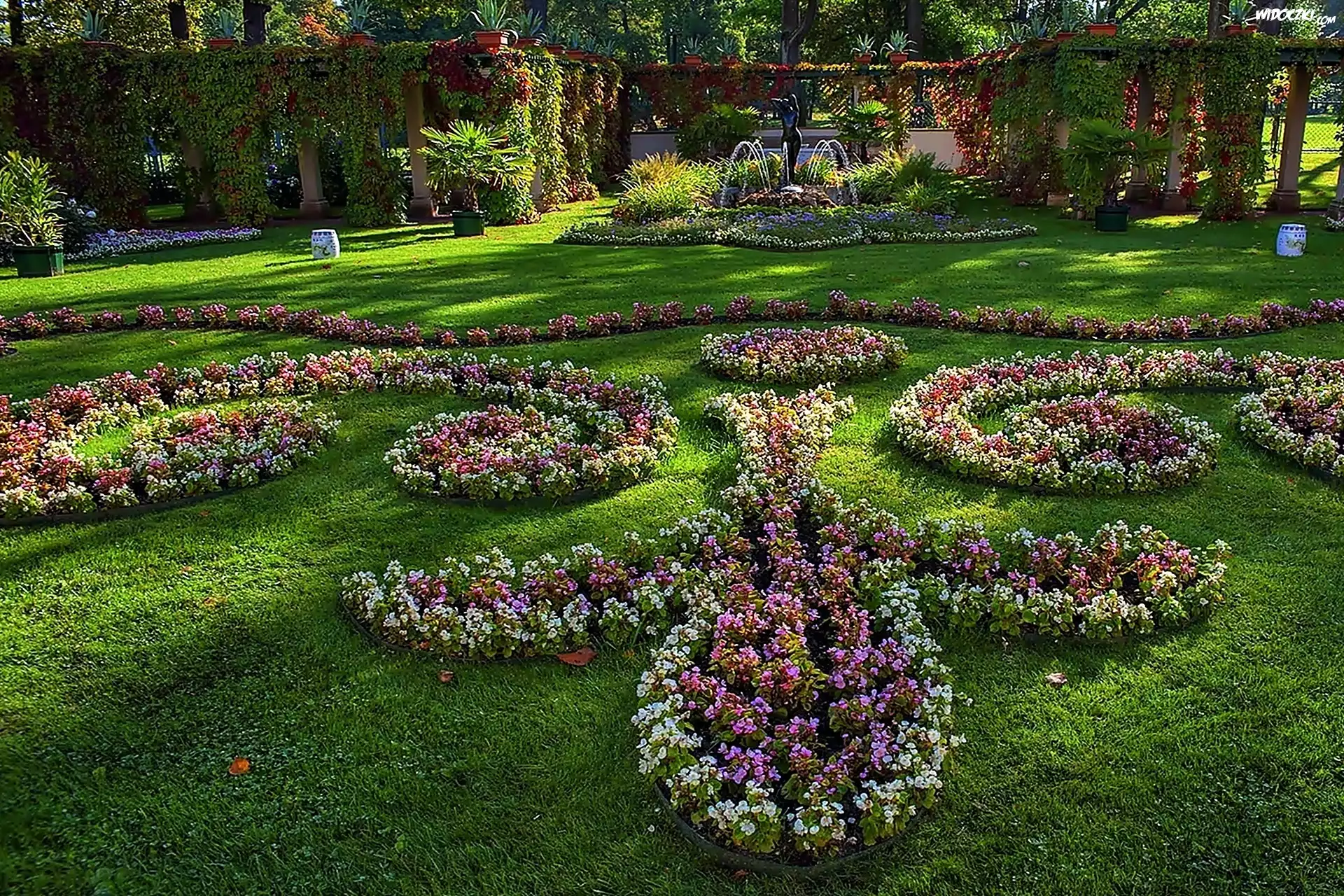 Zdjęcia, Park, Aleksandrowski, Arkada, Fontanna, Gazony, Kwiatowe, Puszkin