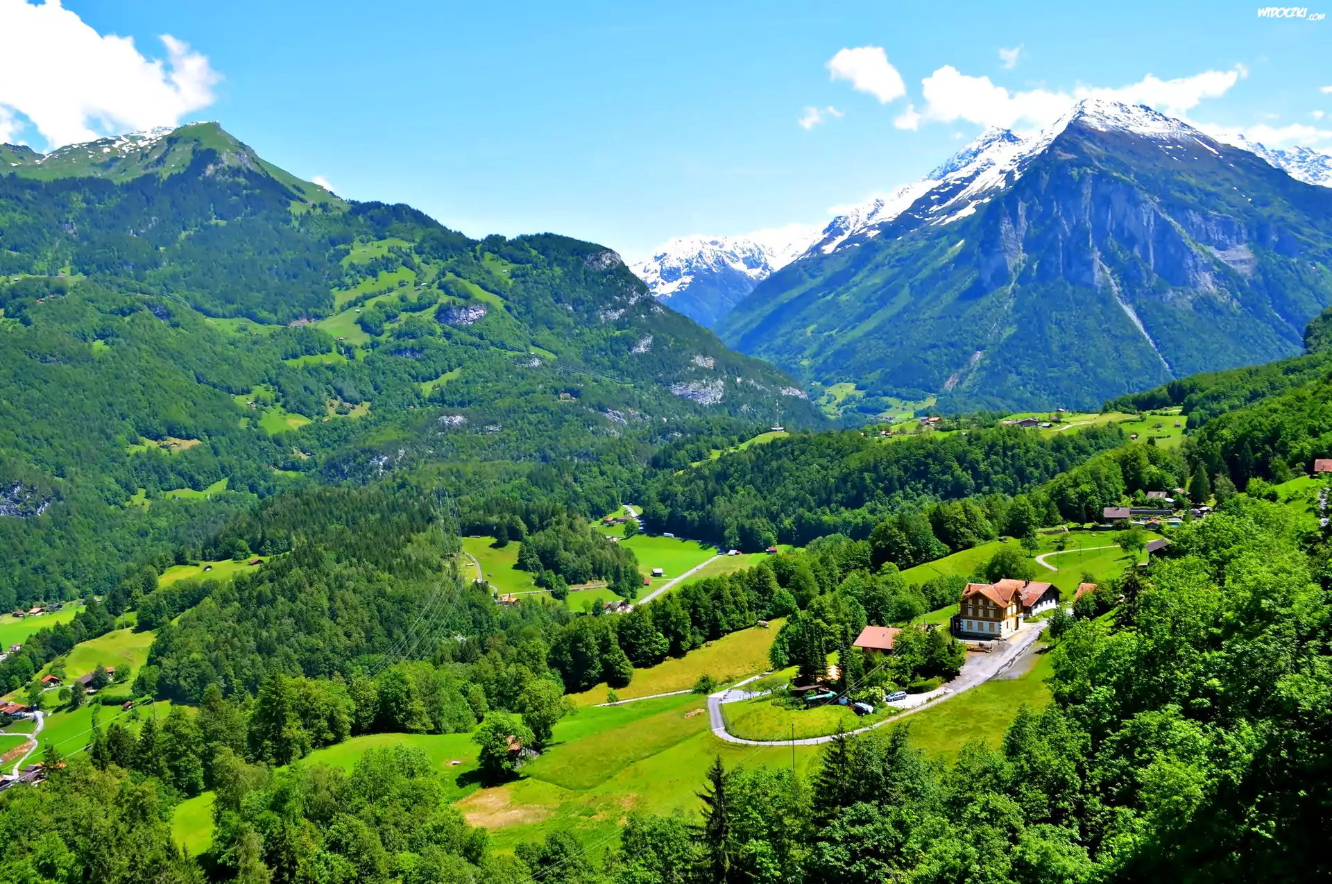 Zdjęcia, Alpy, Lasy, Łąki, Domostwa