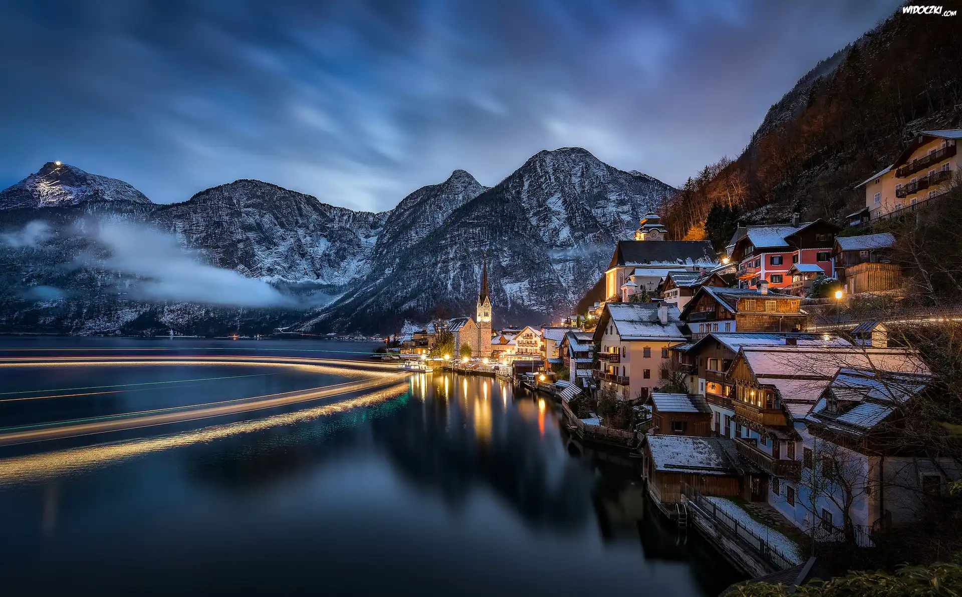 Alpy, Miasteczko Hallsatt, Austria, Góry, Jezioro