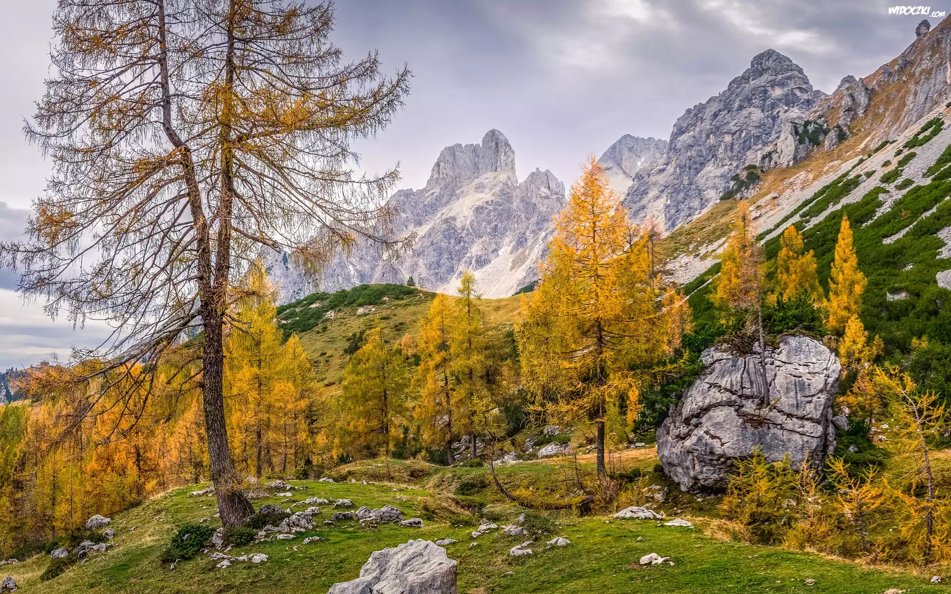 Zdjęcia, Austria, Salzburg, Góry, Alpy, Drzewa, Jesień, Kamienie