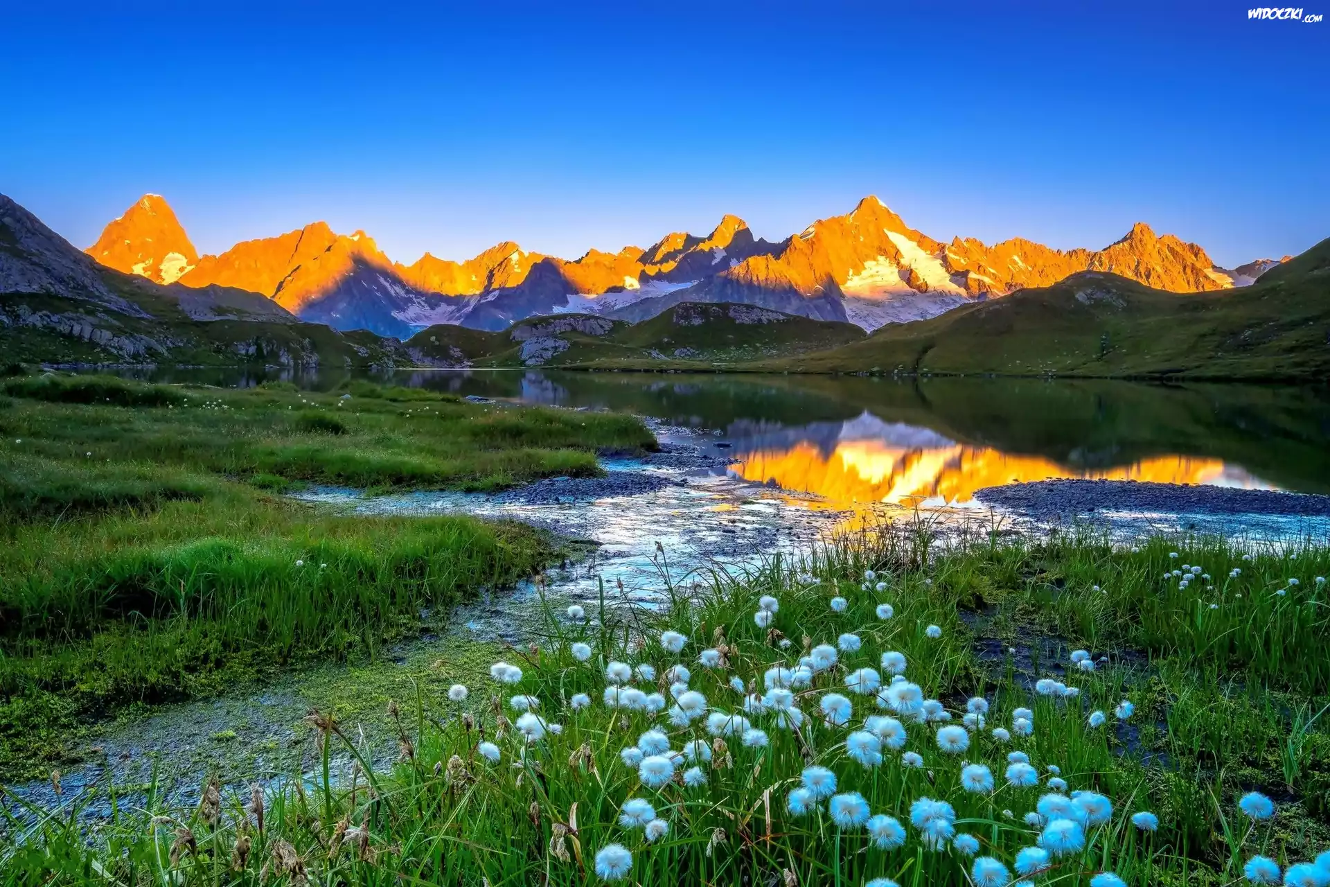 Zdjęcia, Alpy Graickie, Mont Blanc, Jezioro, Łąka