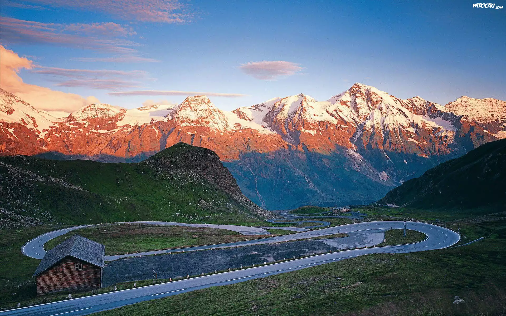 Zdjęcia, Alpy, Zachód, Słońca, Serpentyna