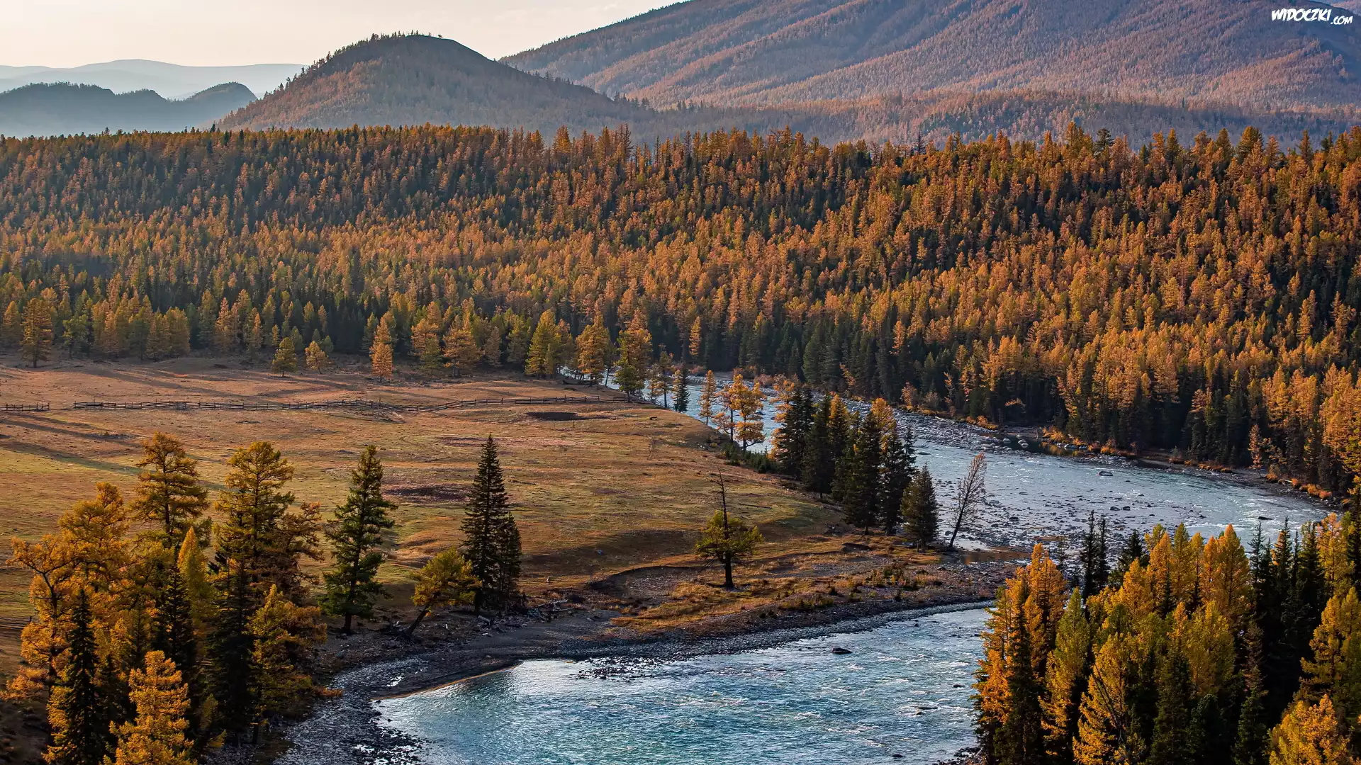 Góry, Ałtaj, Lasy, Drzewa, Jesień, Rzeka, Rosja