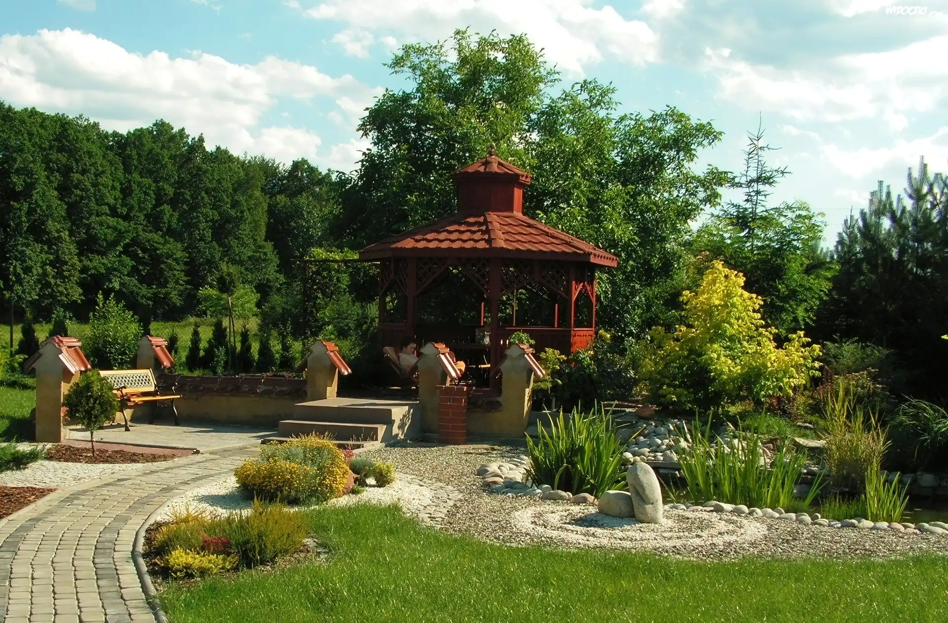 Zdjęcia, Altanka, Ogrodowa, Sadzawka, Roślinność