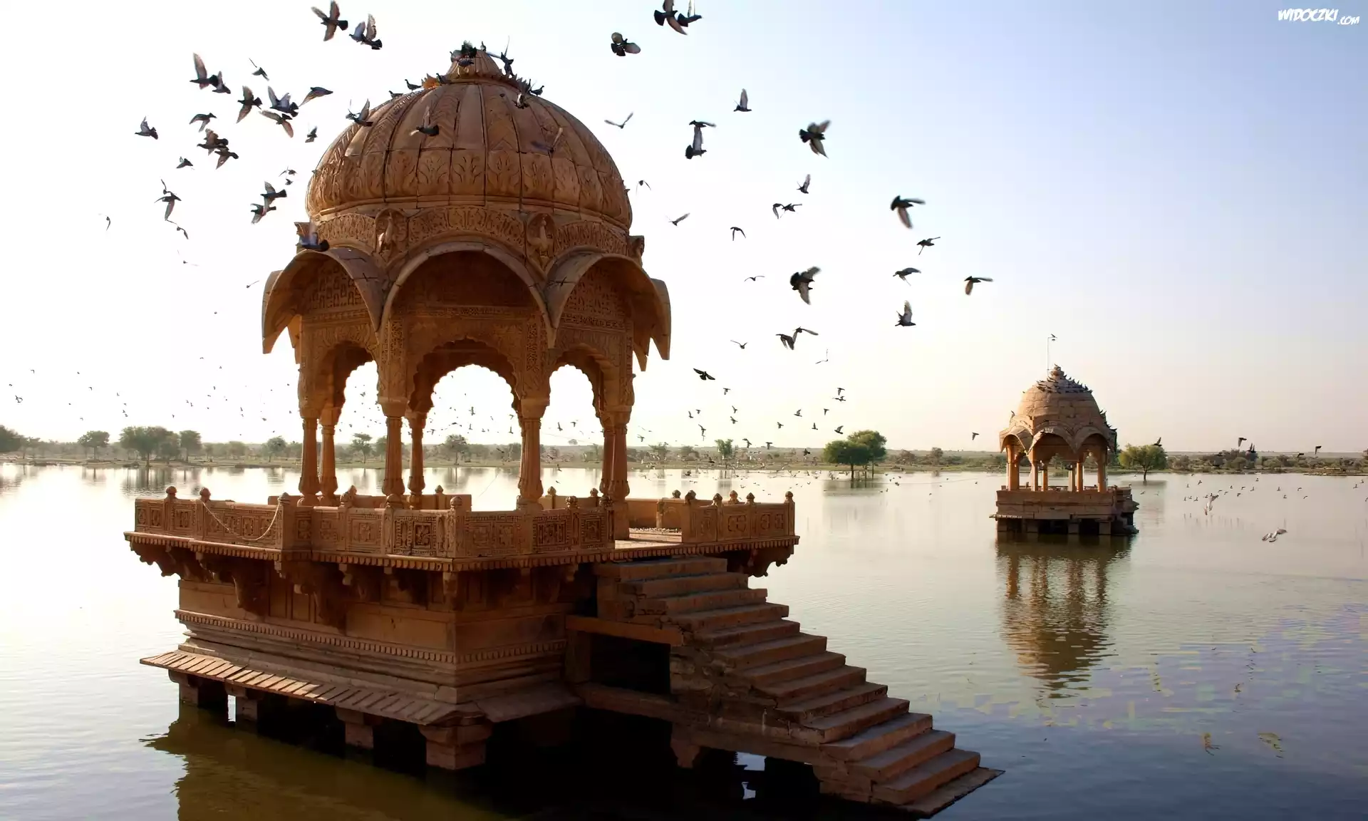 Zdjęcia, Jezioro, Altanki, Ptaki