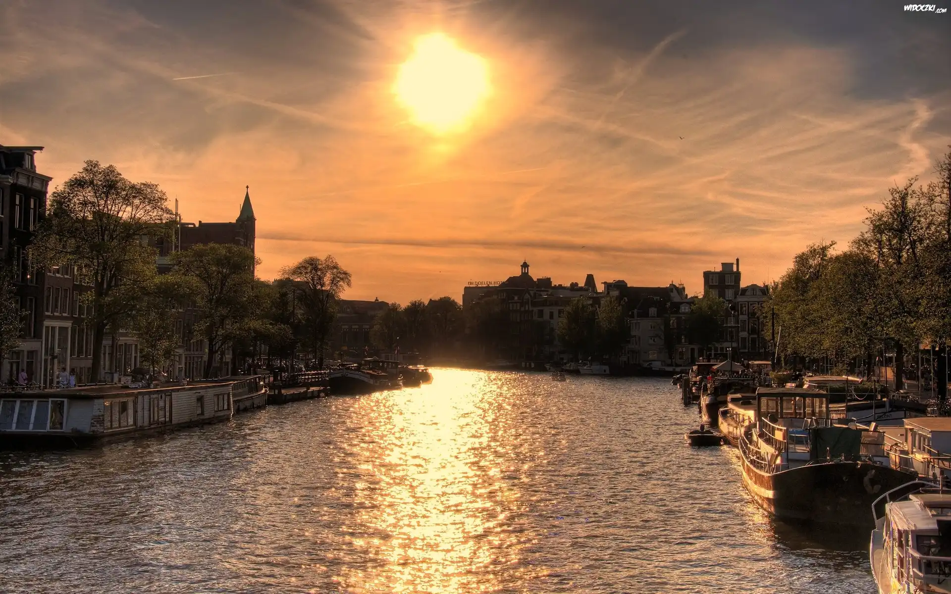 Zdjęcia, Amsterdam, Zachód, Słońca, Kanał, Kamienice