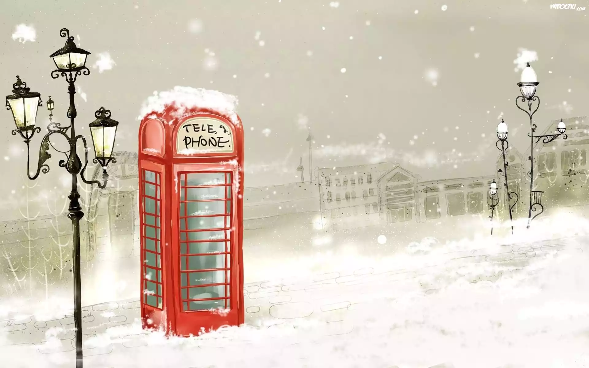 Zdjęcia, Angielska, Budka, Telefoniczna, Zima