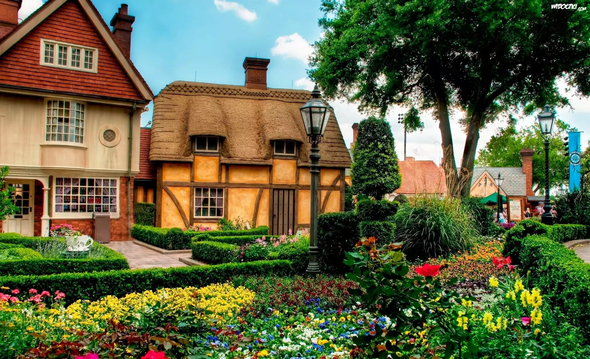 Zdjęcia, Angielskie, Domki, Ogródek, Kwiaty