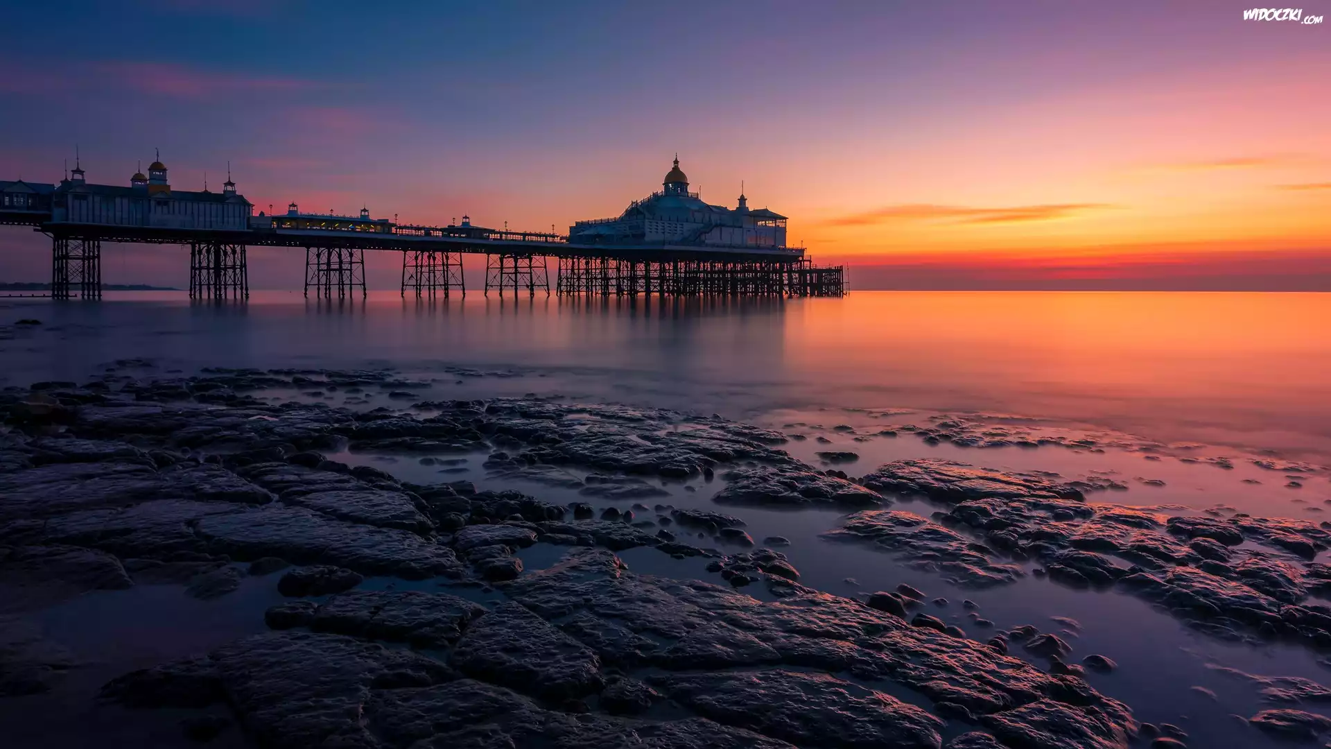 Zdjęcia, Molo, Eastbourne Pier, Morze, Zachód słońca, Eastbourne, Anglia