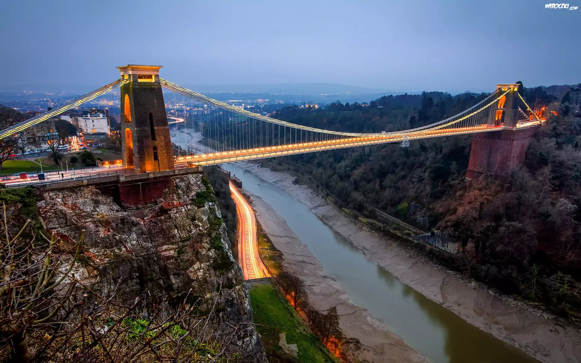 Zdjęcia, Anglia, Bristol, Most, Rzeka, Las