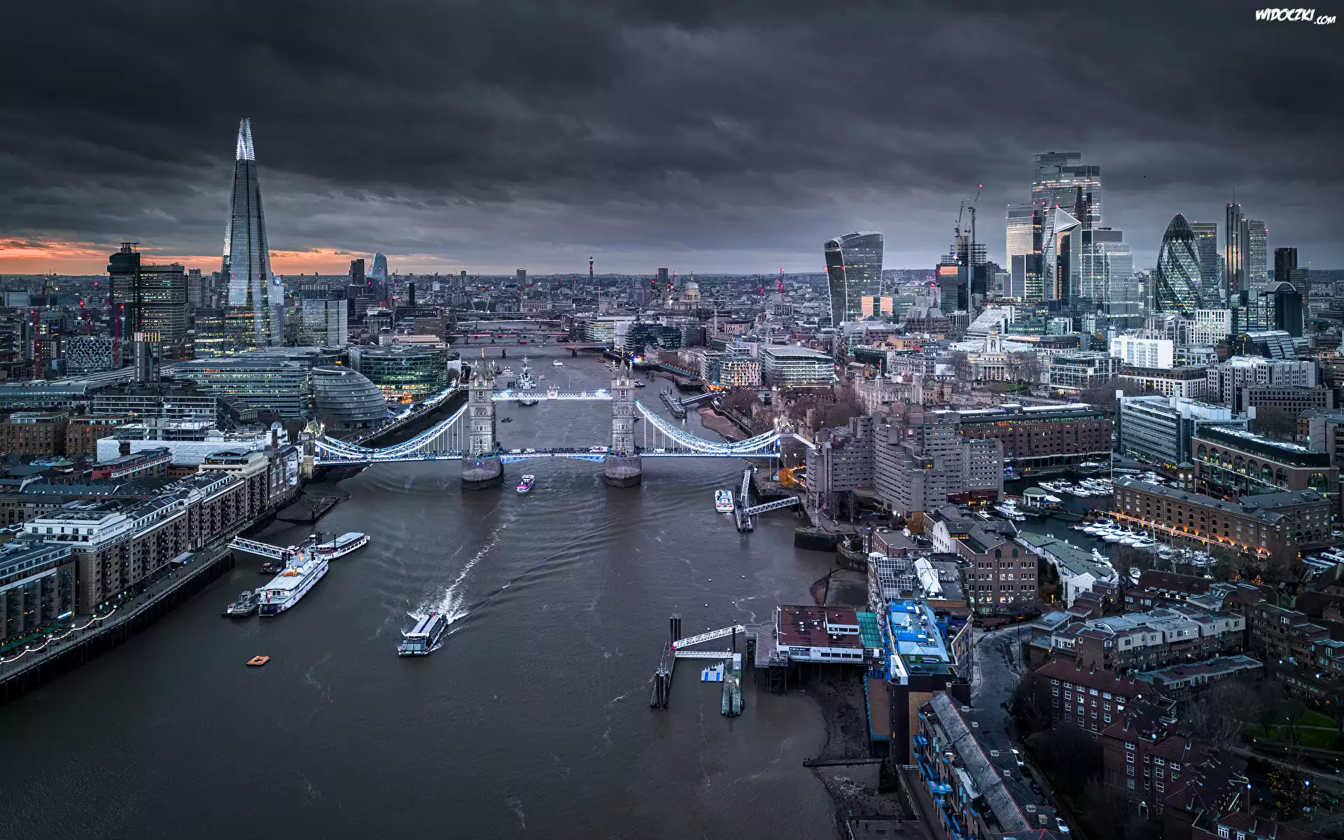 Anglia, Londyn, Rzeka Tamiza, Statki, Most, Tower Bridge, Budynki