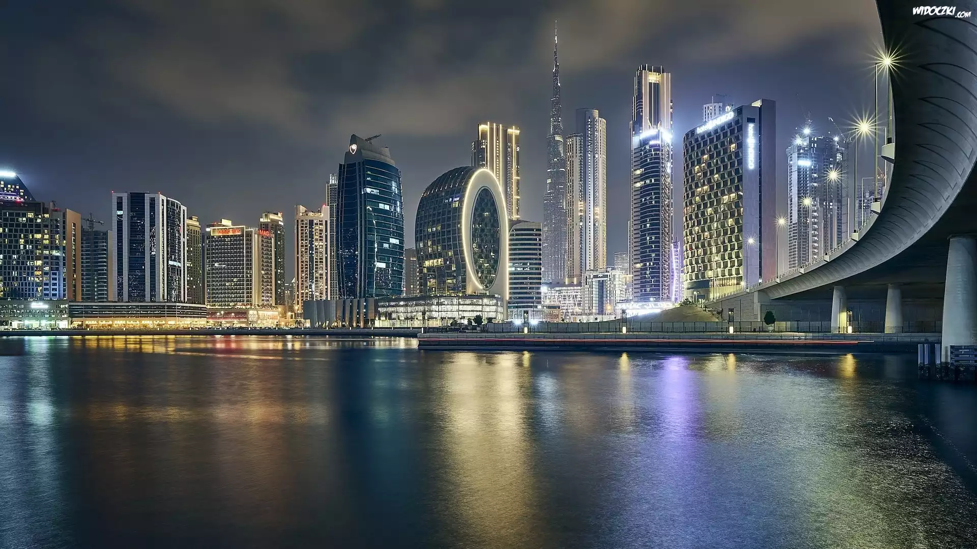 Drapacze chmur, Rzeka, Miasto, Dubaj, Zjednoczone Emiraty Arabskie