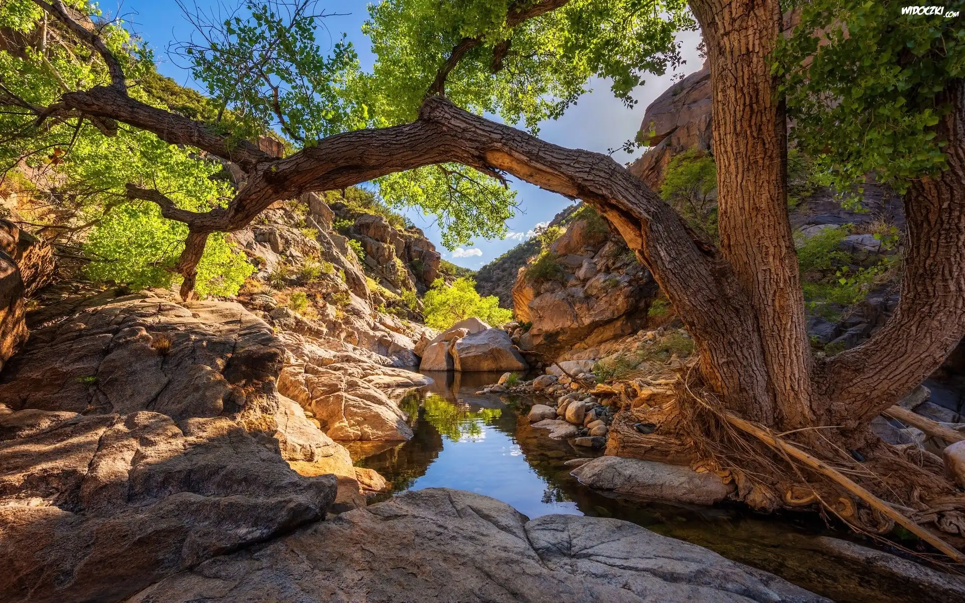 Zdjęcia, Skały, Wąwóz, Rzeka, Poland Creek, Drzewo, Prescott National Forest, Arizona, Stany Zjednoczone