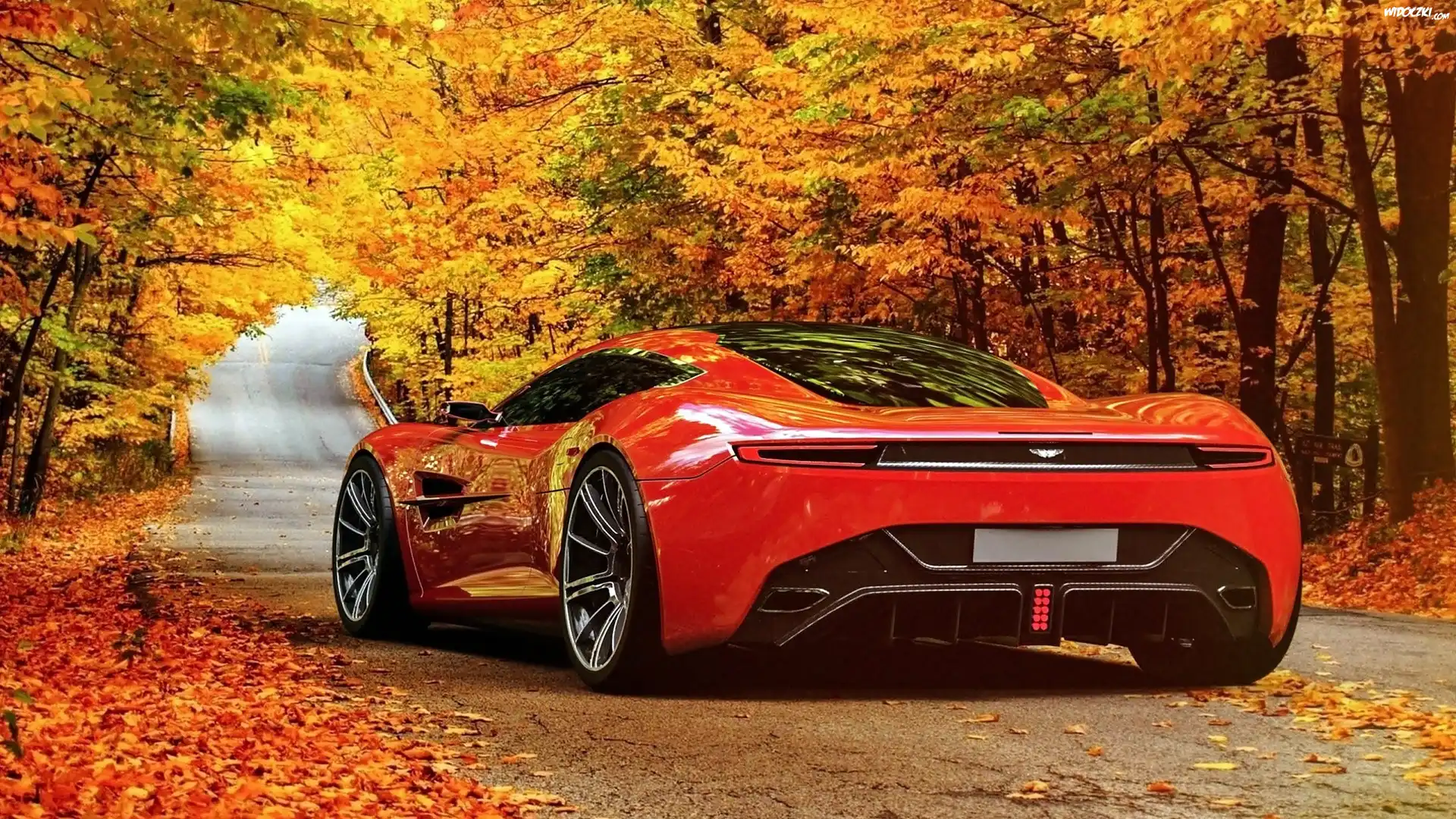 Zdjęcia, Czerwony, Aston, Martin, DBC, Jesień, Las, Droga