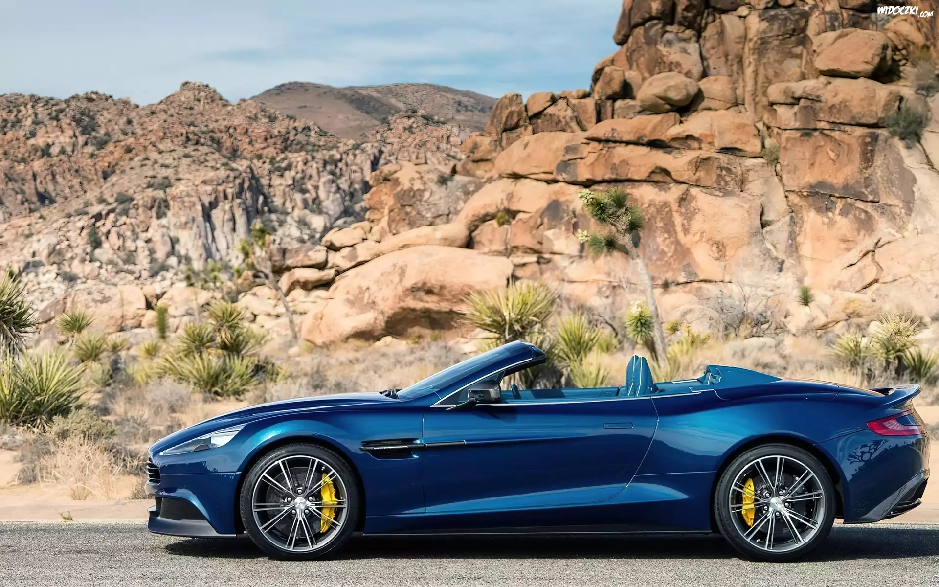 Aston Martin, Vanquish, Volante, Skały, Rośliny