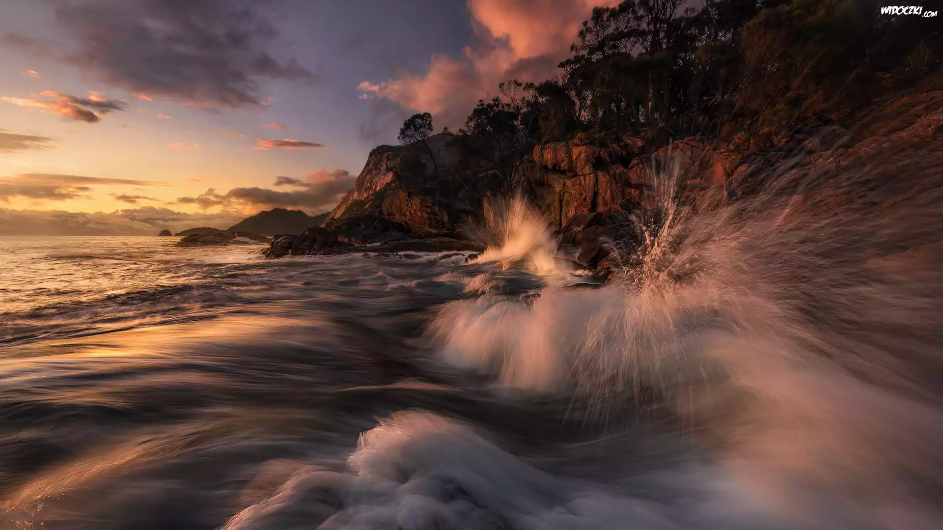 Zdjęcia, Morze, Skały, Fale, Park Narodowy Freycineta, Tasmania, Australia