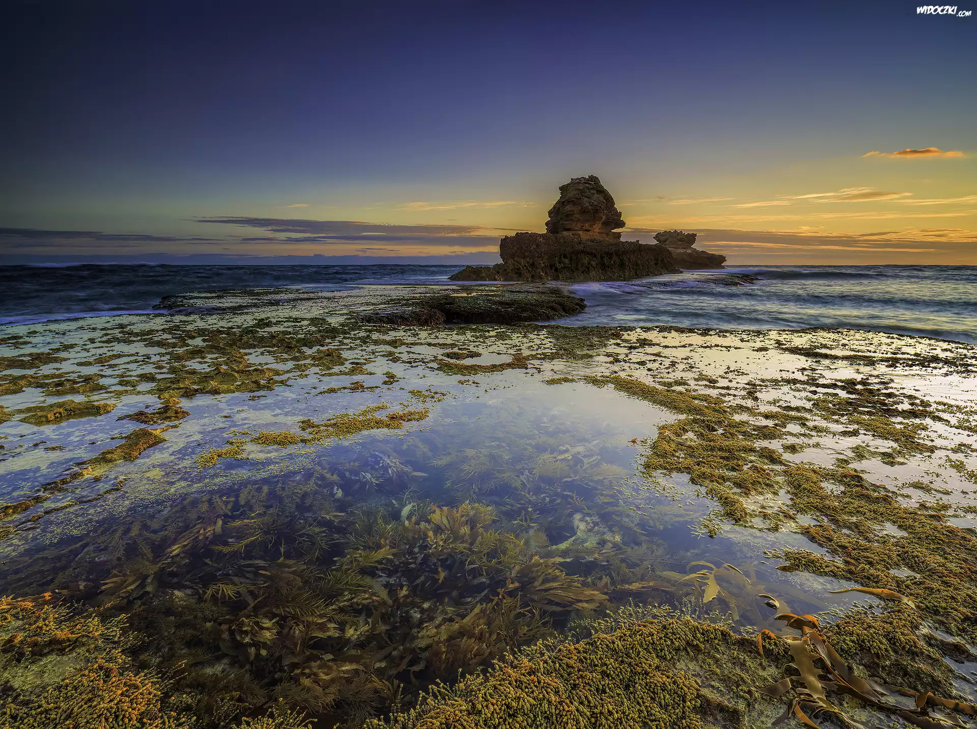 Australia, Sorrento, Park Narodowy Mornington Peninsula, Zatoka Bay of Islands, Morze, Wodorosty, Skały |