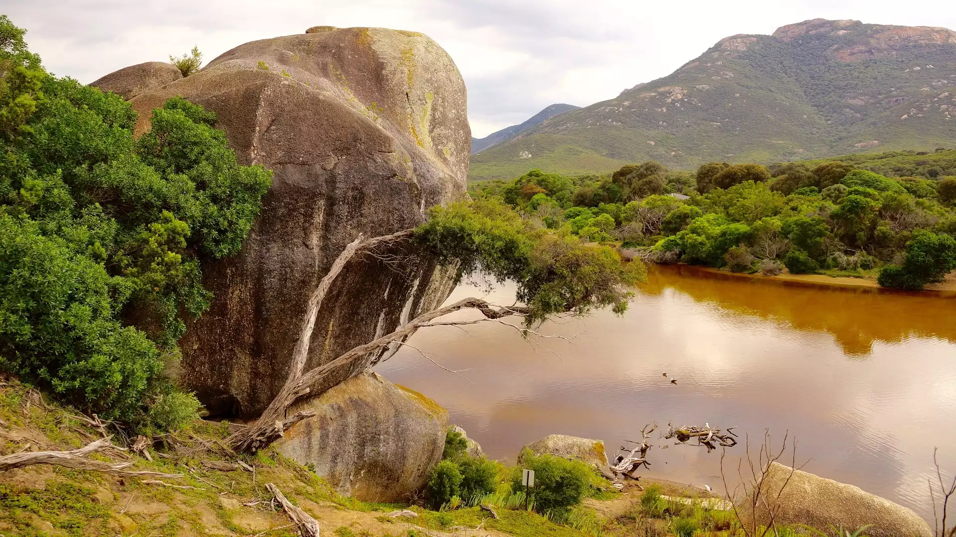 Australia, Kamień, Góry, Rzeka, Las